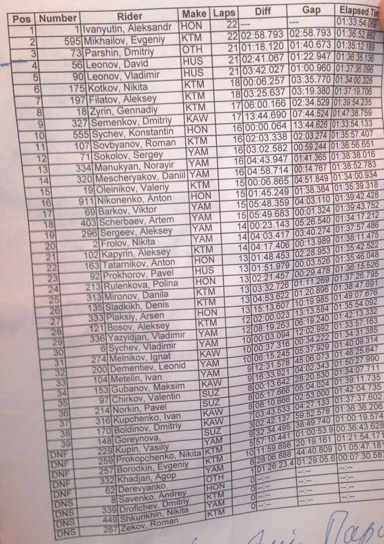 Предварительные результаты четвертого этапа в Орленке (класс МОТО).