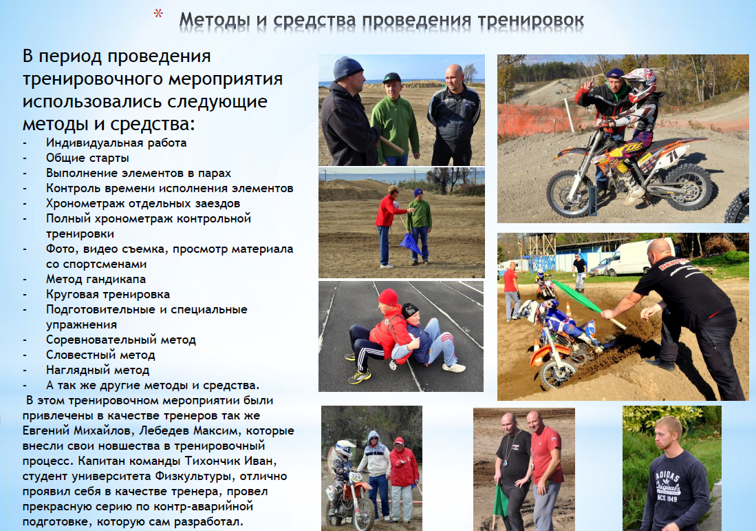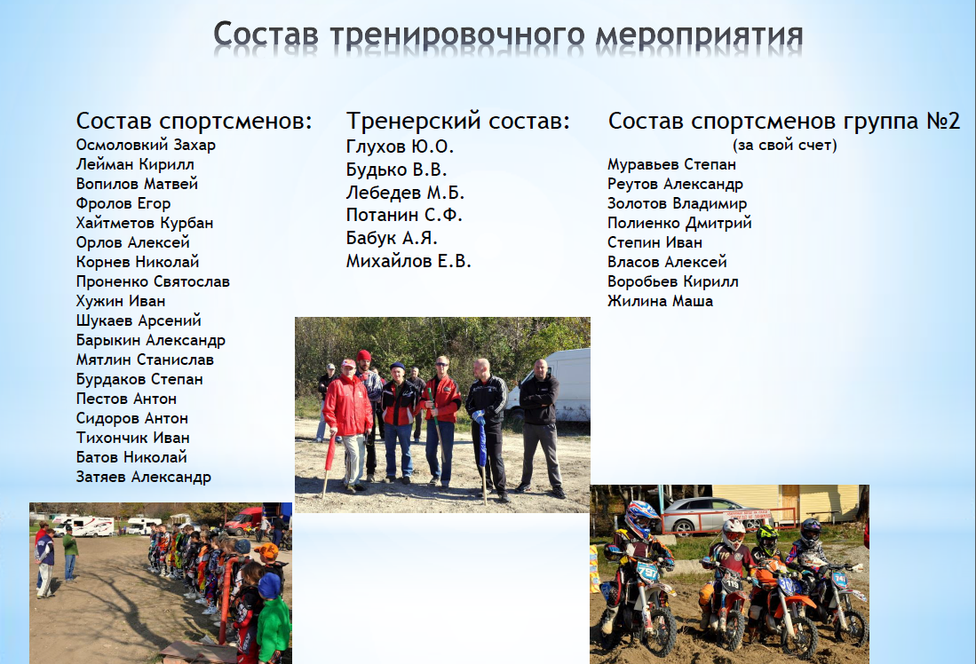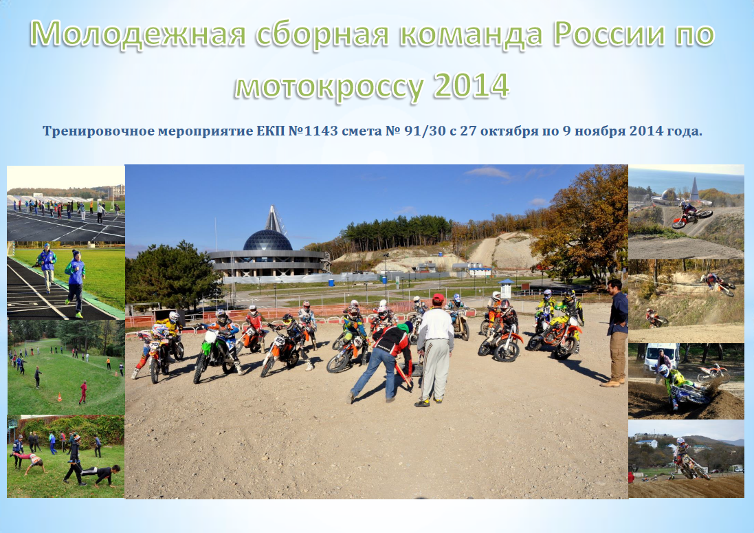 Отчет о ТМ молодежной сборной команды России. 28.11.2014 Юрий Глухов 27 октября - 9 ноября 2014 года. ВДЦ Орленок. Отчет о тренировочном мероприятии молодежной сборной команды России, которое проходило с 27 октября по 9 ноября 2014 года в ВДЦ Орленок. Комиссия мотокросса Мотоциклетной Федерации России Глухов Ю.О. Комментарии Комментарии к этой статье запрещены.