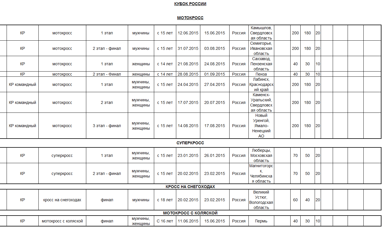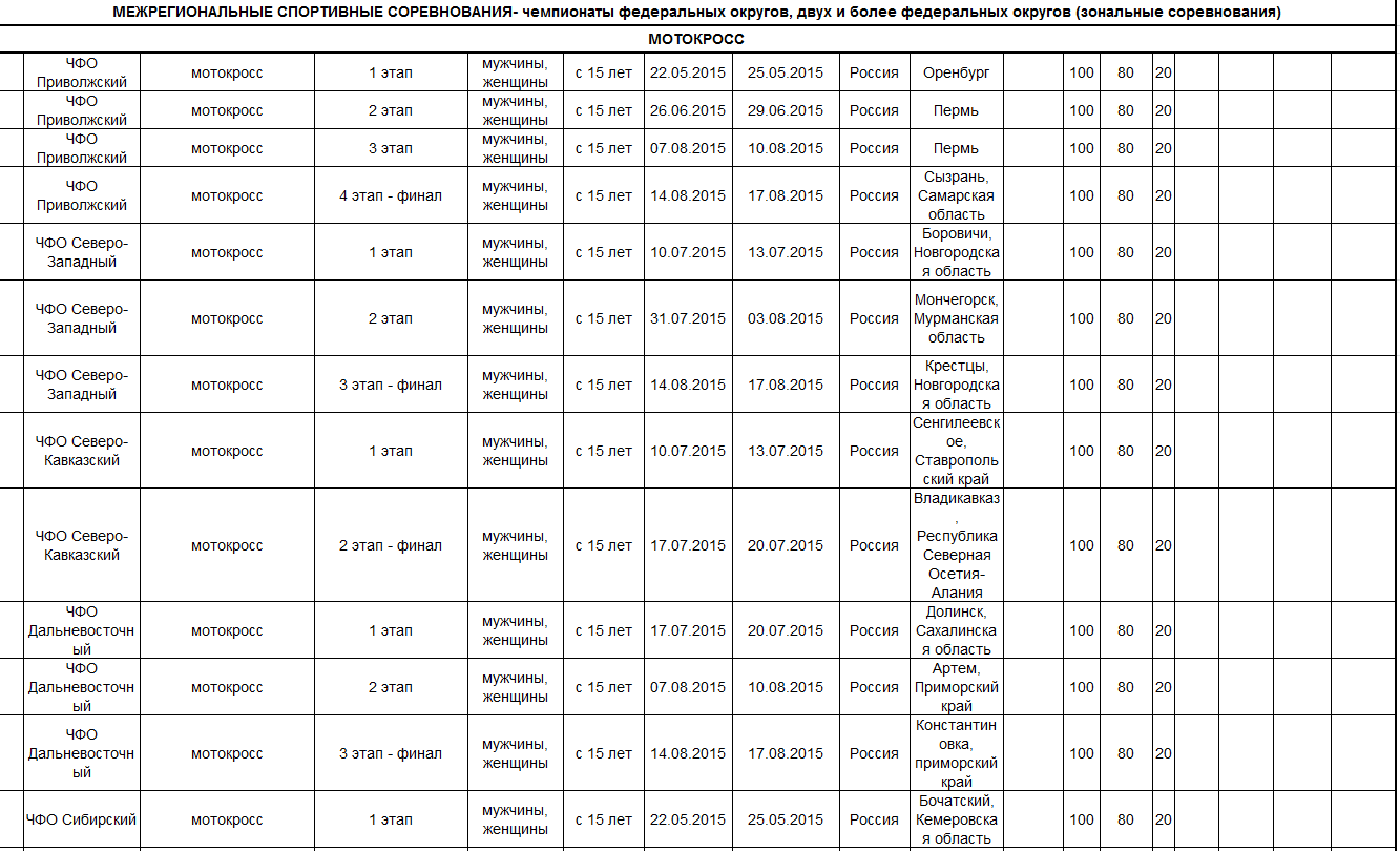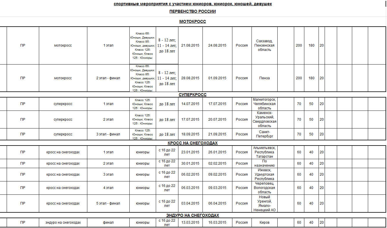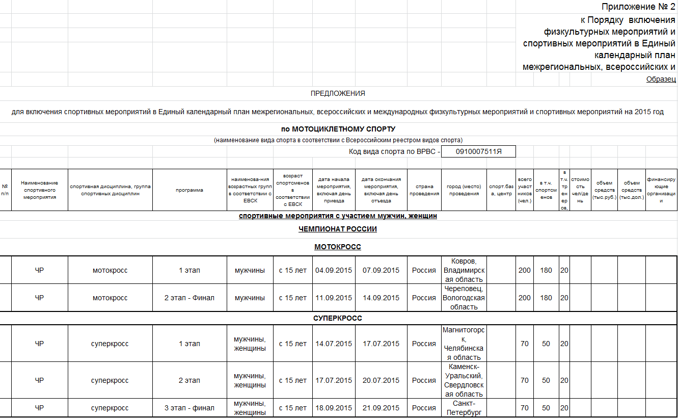 Предлагаем ознакомиться с проектом спортивных мероприятий по мотоспорту на 2015 год, находящимся на рассмотрении в Министерстве спорта Российской федерации.