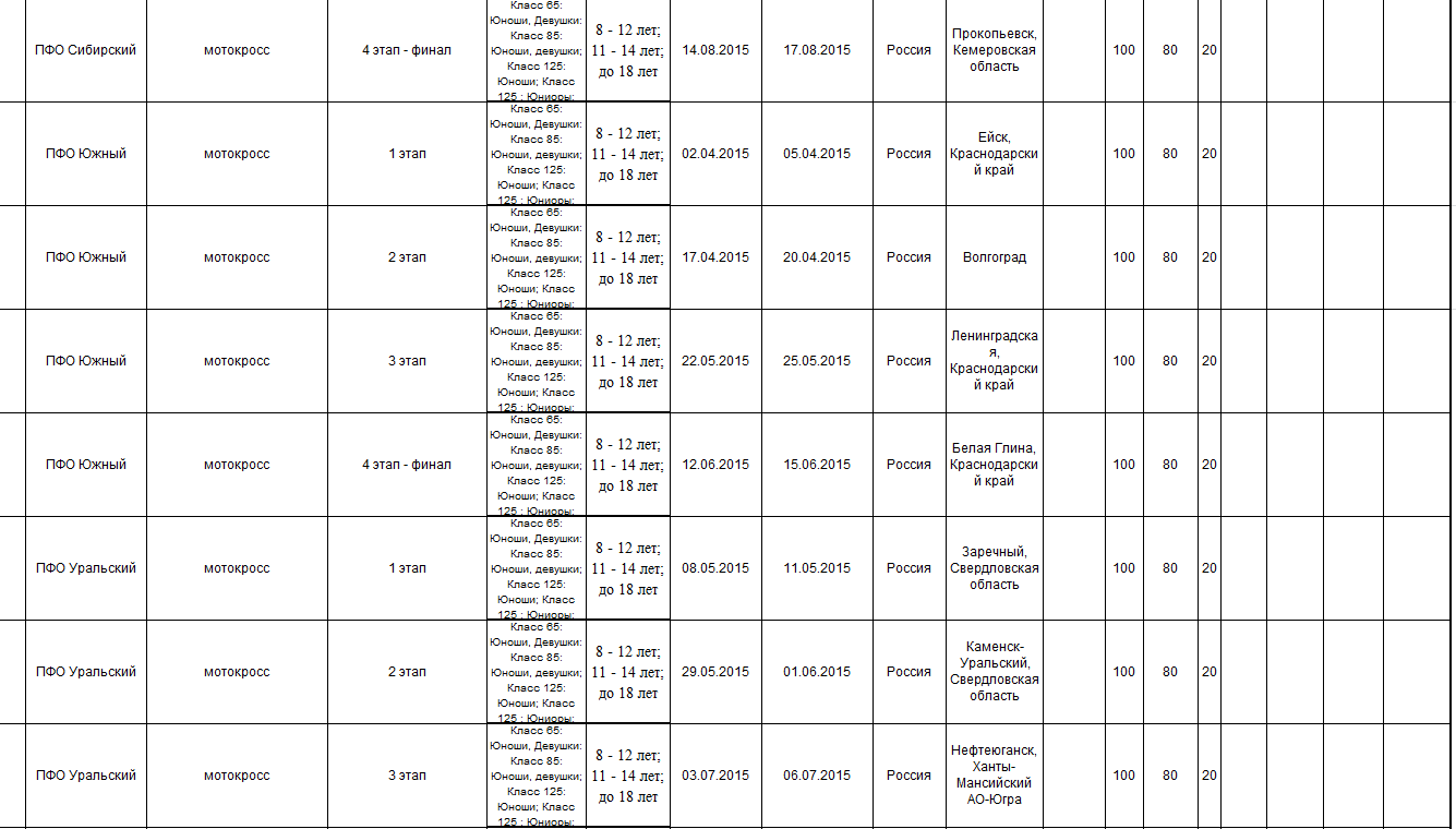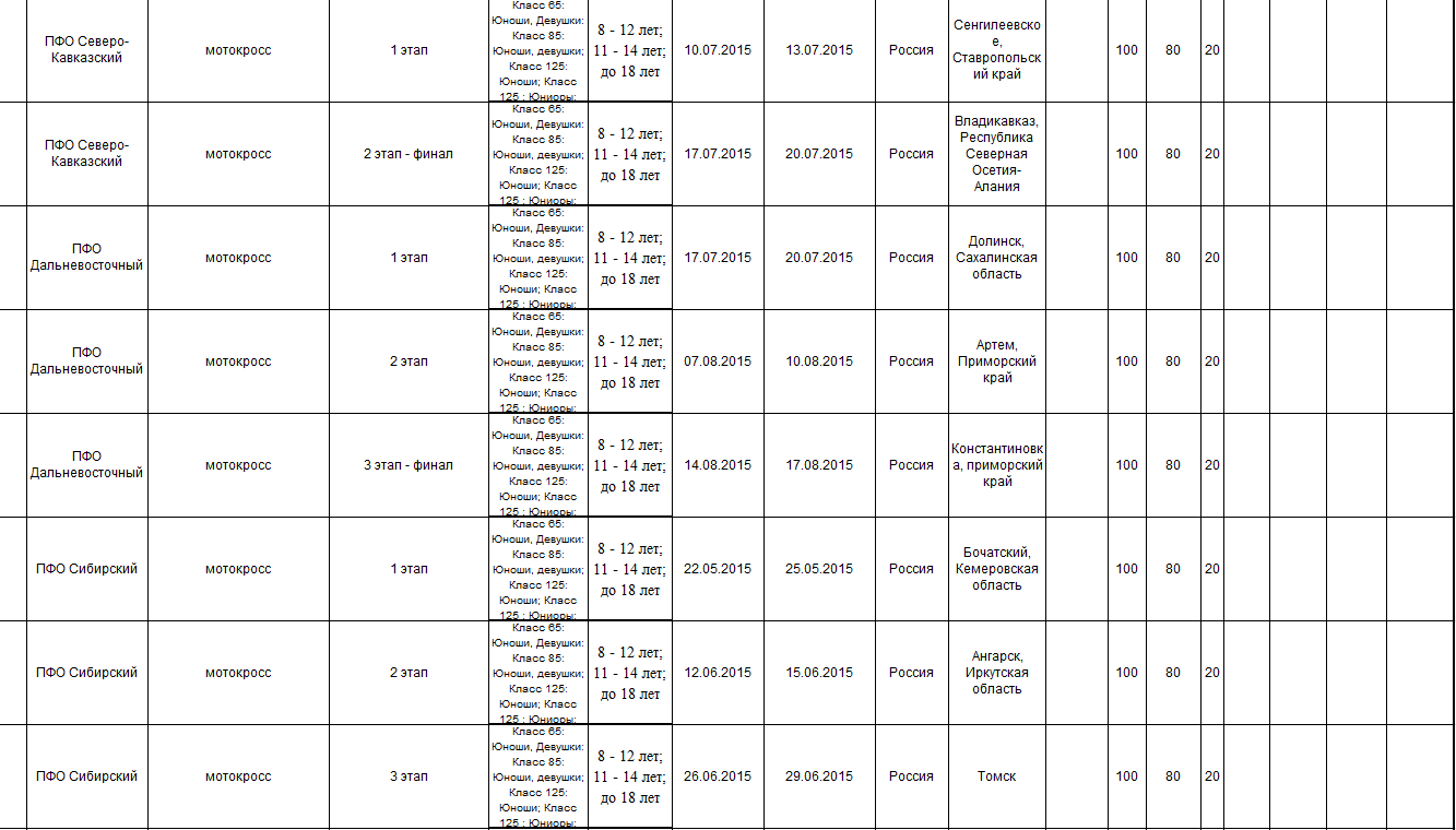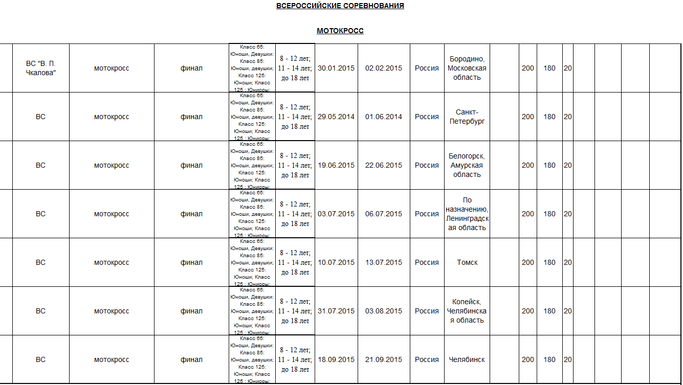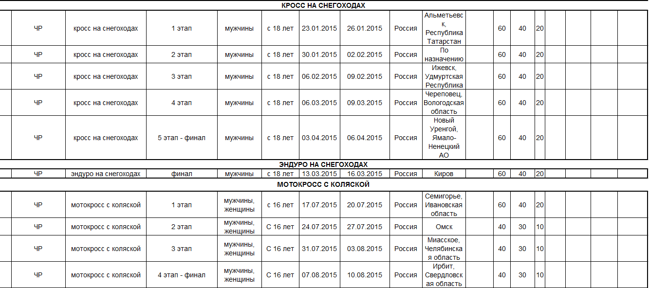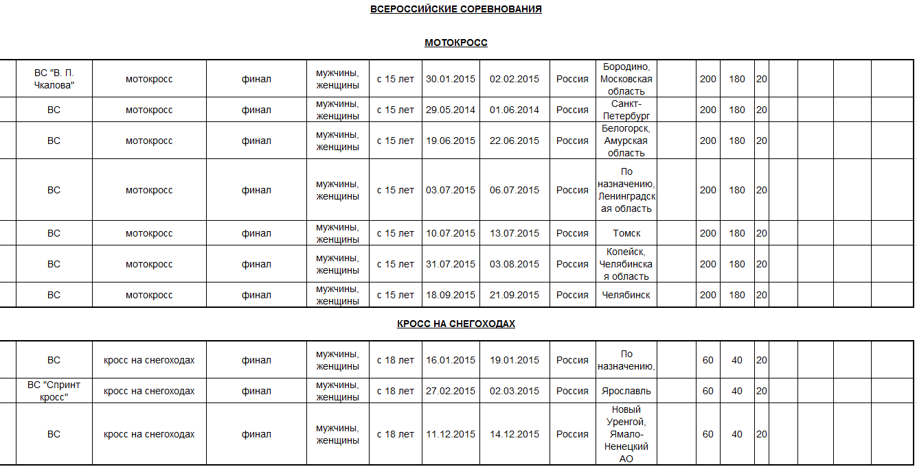 Предлагаем ознакомиться с проектом спортивных мероприятий по мотоспорту на 2015 год, находящимся на рассмотрении в Министерстве спорта Российской федерации.