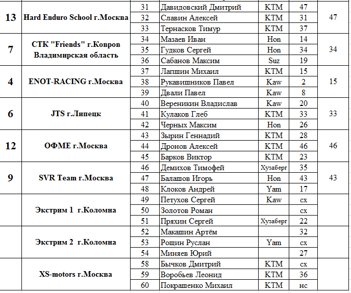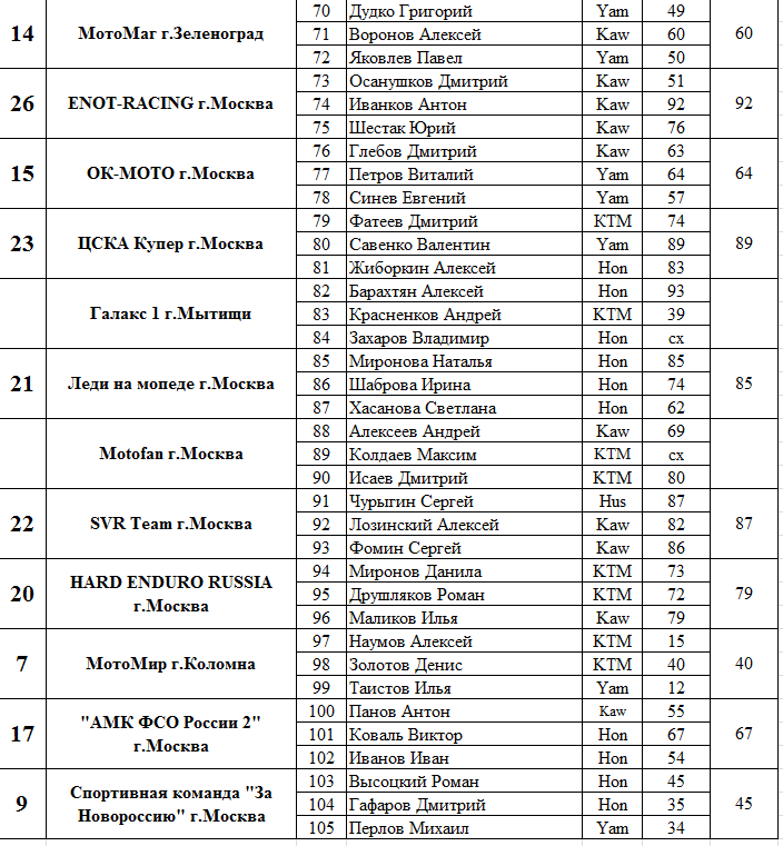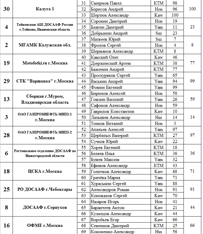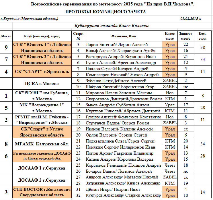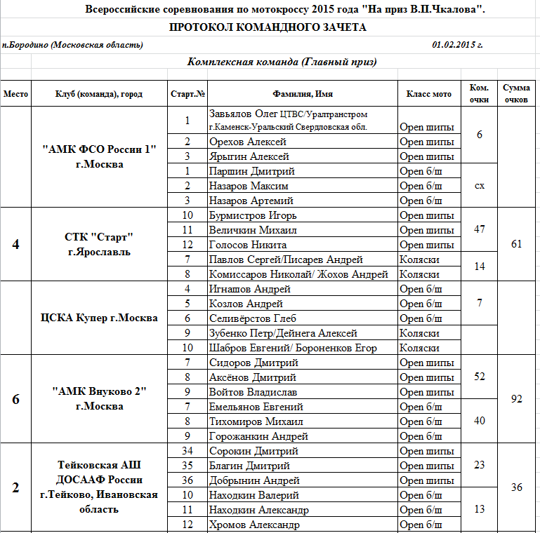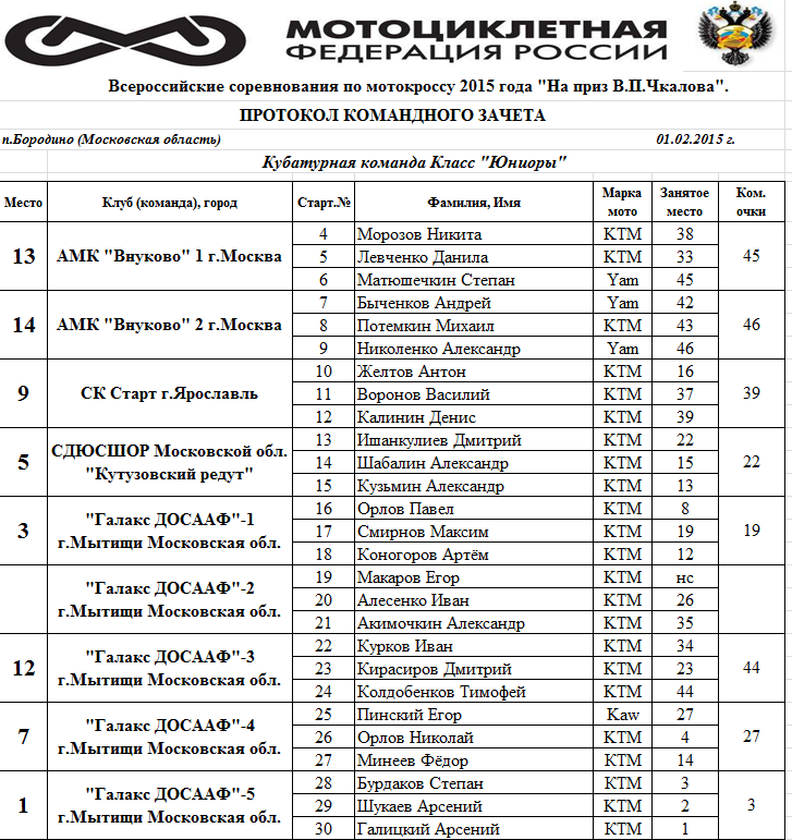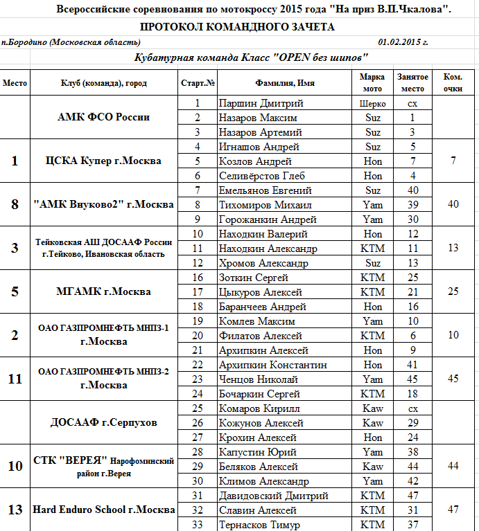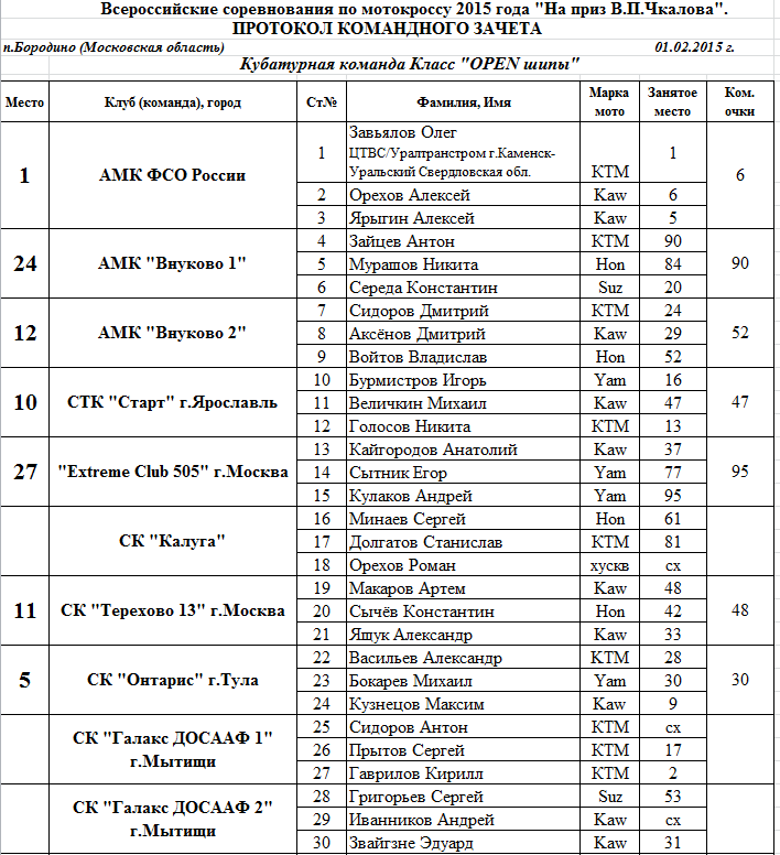 Протоколы результатов Всероссийского мотокросса на приз Валерия Чкалова 2015.