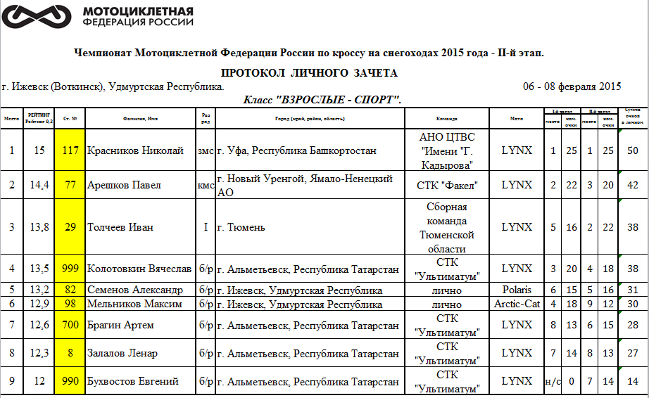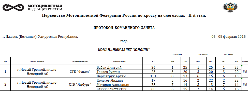 С 6 по 8 февраля в Ижевске (Воткинск), Удмуртская Республика прошел второй этап Чемпионата России и Первенства 2015 года, Чемпионата МФР по кроссу на снегоходах.