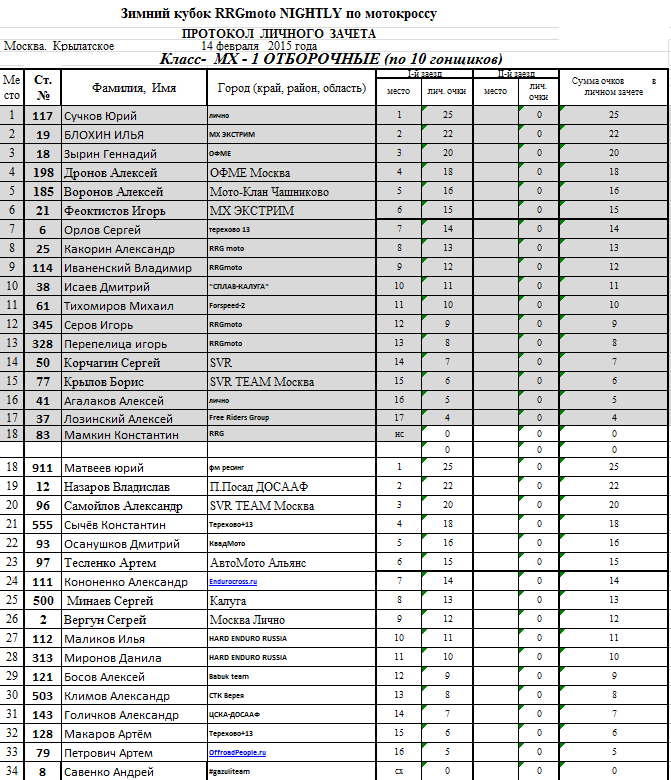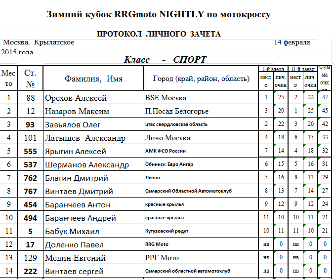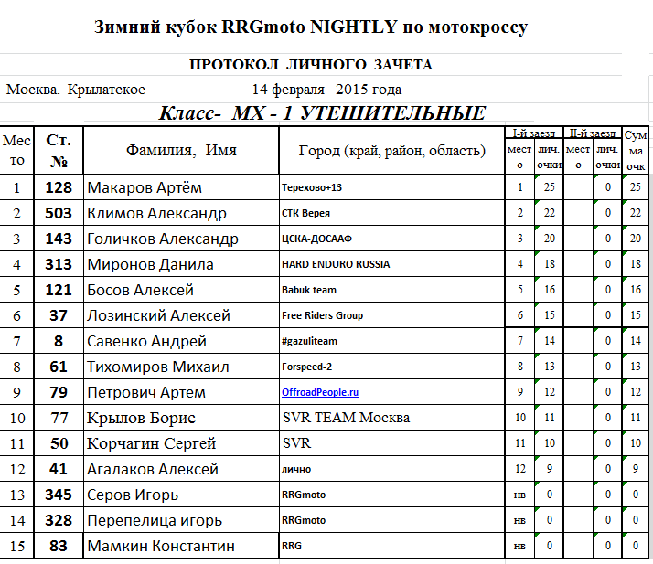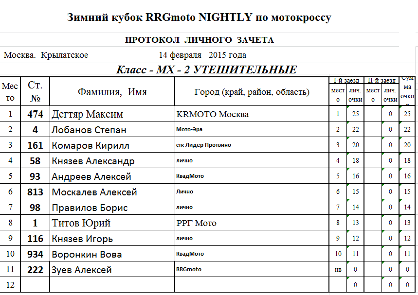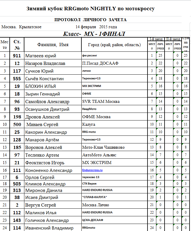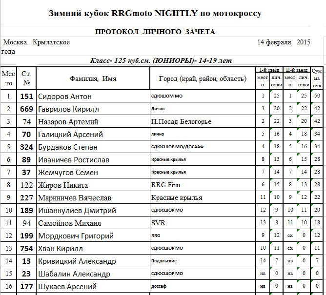 Предлагаем ознакомится с протоколами результатов: