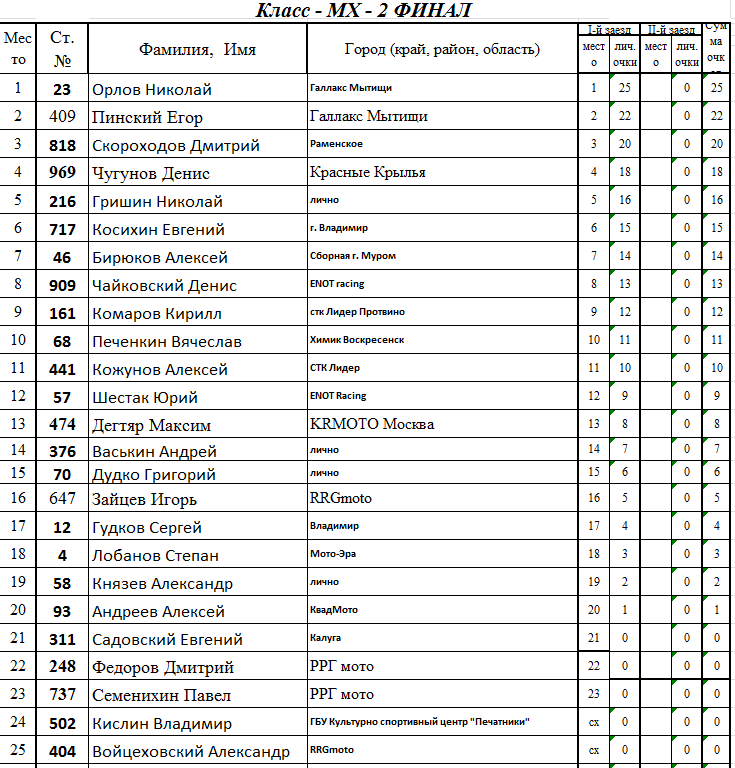 В финальных заездах победителями в классах Хобби стали: Николай Орлов из Мытищ (МХ2) и Юрий Матвеев из Калуги (МХ1).