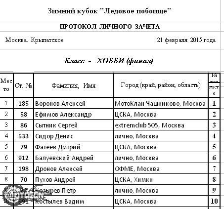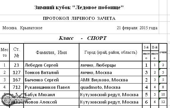 Ледовое побоище в Крылатском. 24.02.2015 Роман Мишенев (_) Результаты. 21 февраля на Большом пруду в Крылатском (г. Москва) прошел мотокросс по льду - Ледовое побоище. Результаты: : Комментарии Комментарии к этой статье запрещены.