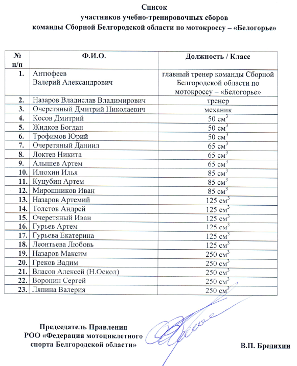 Учебно-тренировочные сборы кандидатов в Сборную Белгородской области по мотокроссу «Белогорье» пройдут в период с 02.04. по 10.04.2015 года.
