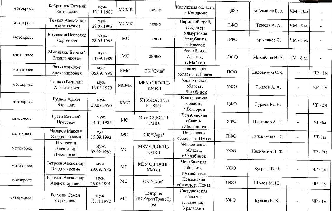 Сборная команда МФР 2015 04.04.2015 Роман Мишенев (_) Официальные списки сборной команды МФР на 2015 год по мотокроссу, эндуро, ATV и супермото. Списки утверждены Министерством спорта РФ согласно критериям формирования сборных команд по результатам 2014 года. Списки сборной команды МФР 2015: Тренеры и специалисты работающие с командой: Основной состав: Юниоры: Юноши: Резервный состав: Комментарии Комментарии к этой статье запрещены.