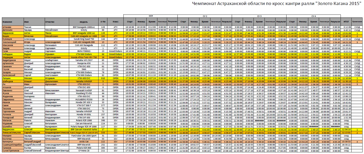 Итоговые результаты Открытого Чемпионата Астраханской области по кросс-кантри ралли.