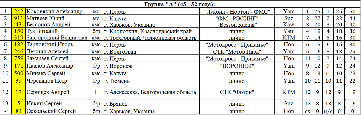 Группа «А» (мужчины, 45 – 52 года):