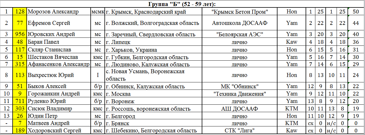 Группа «Б» (52 – 59 лет):