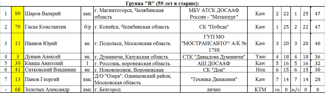 Группа «В» (59 лет и старше):