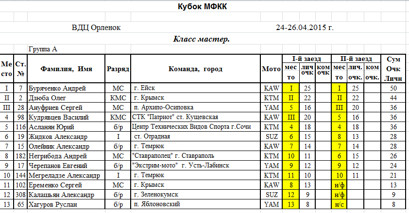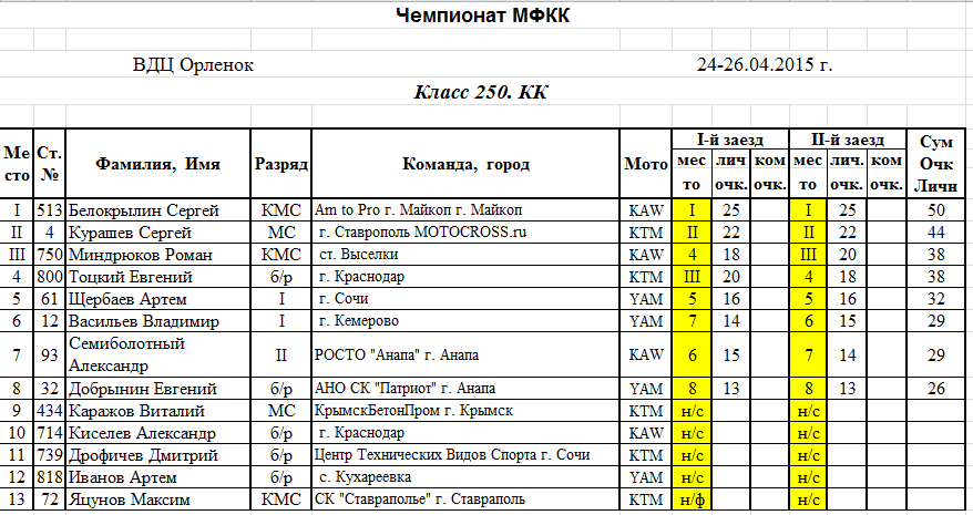 25-26 апреля 2015 года на трассе спортивного комплекса ВДЦ Орленок состоялся 1-й этап Кубка России по мотокроссу в классах 85см3, 125см3, 250см3, и OPEN 2.