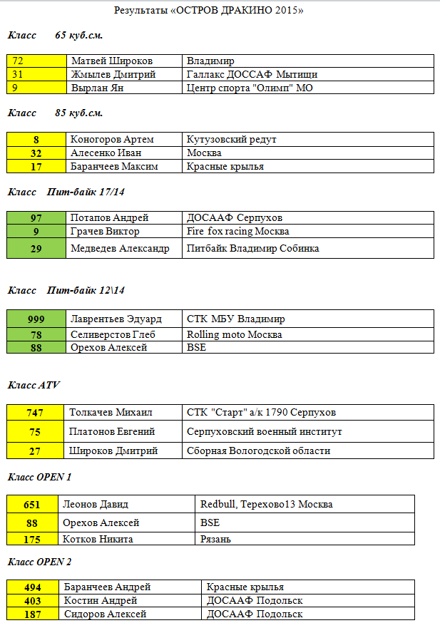 Соревнования прошли в нескольких классах: 65 и 85 куб.см., пит-байк, ATV, open 1, open 2 и open 3.