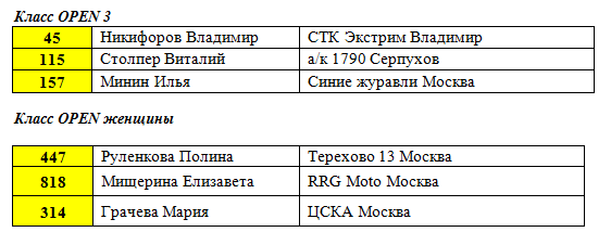 В классе Оpen 2 лучшим оказался гонщик команды "Красные Крылья" Андрей Баранчеев, в Оpen 3 - Владимир Никифоров из Владимирской команды "СТК Экстрим".