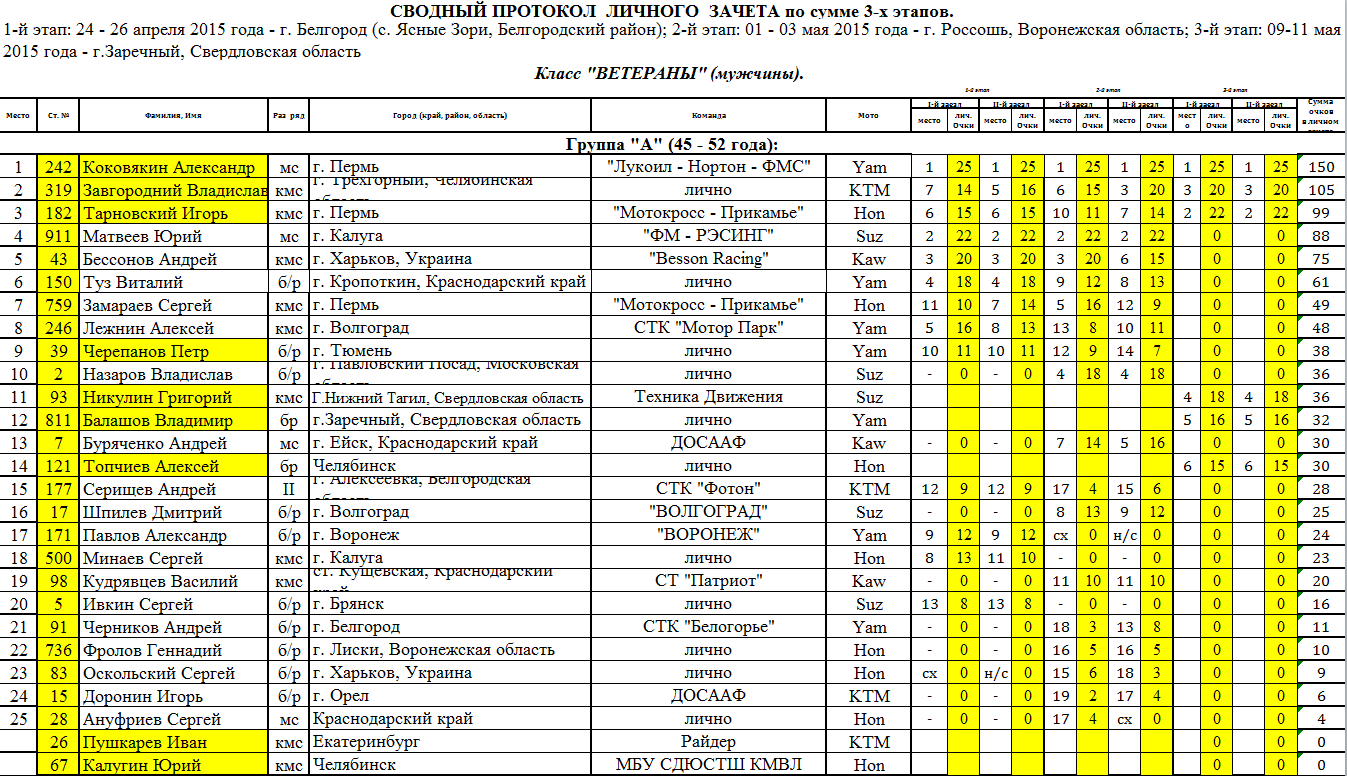 Протоколы результатов 3-го этапа и общий по итогам 3-х этапов: