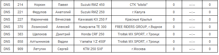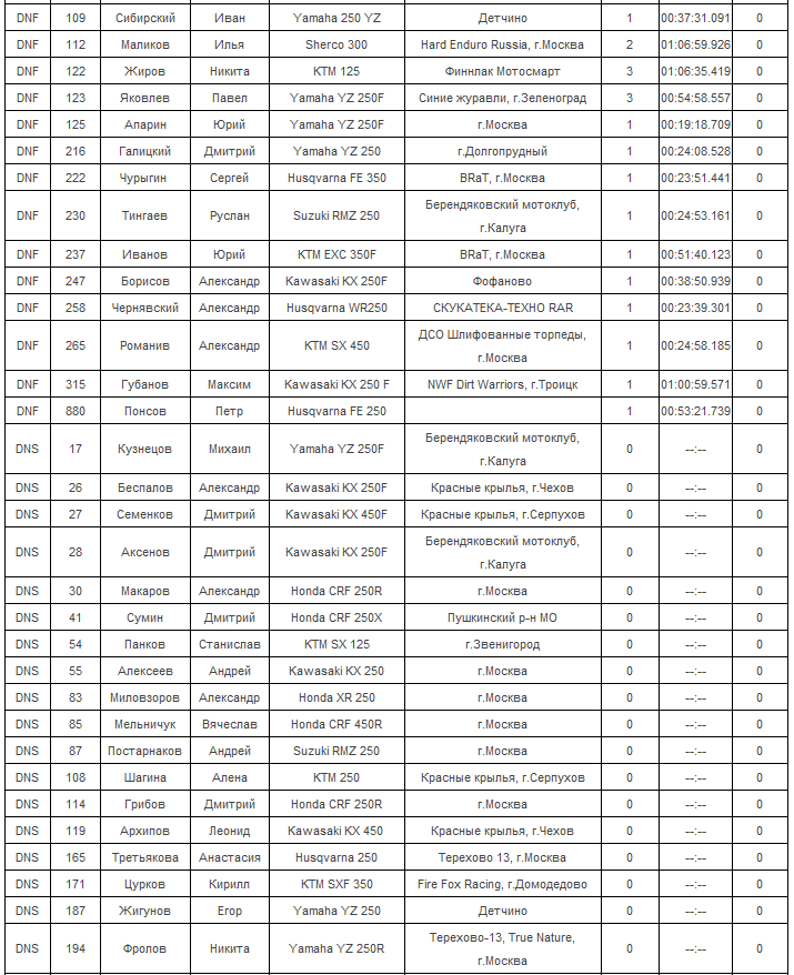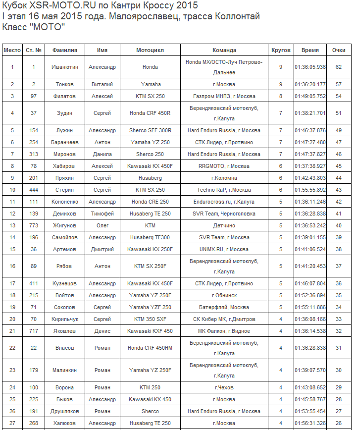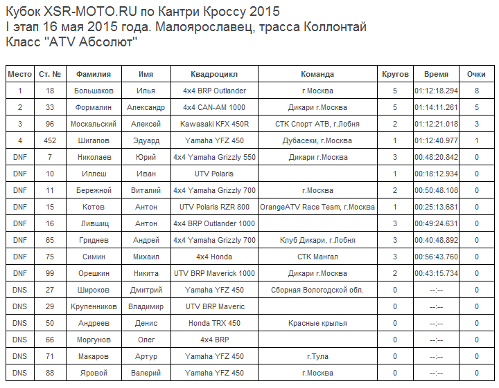 16 мая - Малоярославец, трасса Коллонтай. Протоколы результатов первого этапа.