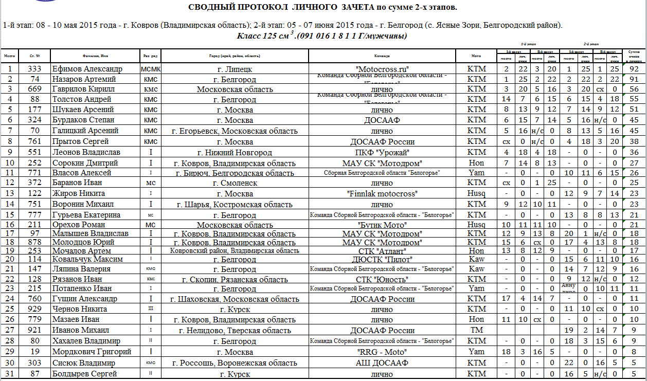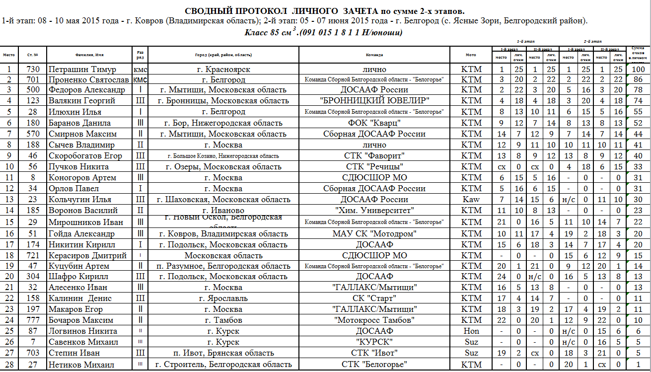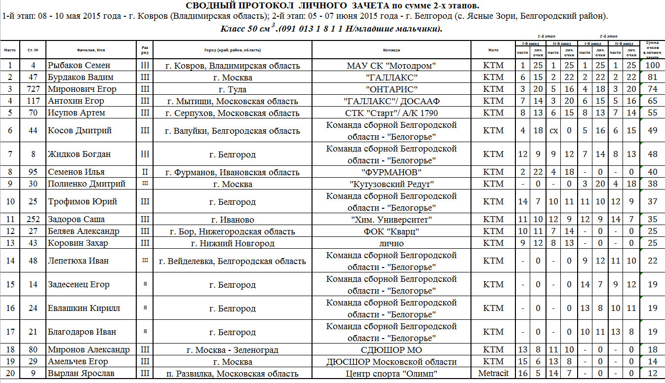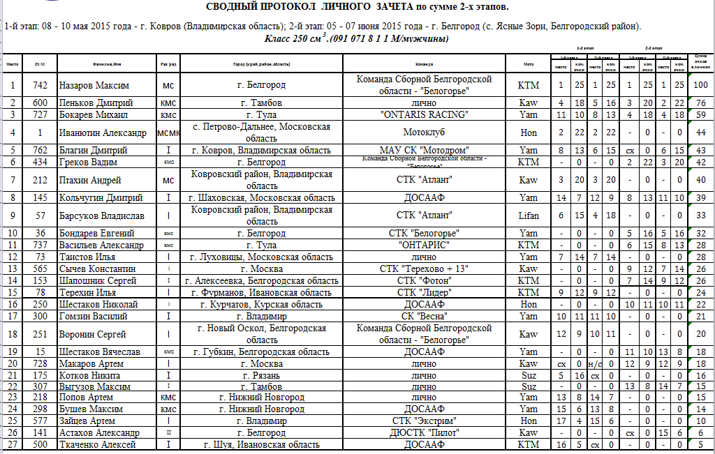 Сводные протоколы по итогам 2-х этапов: