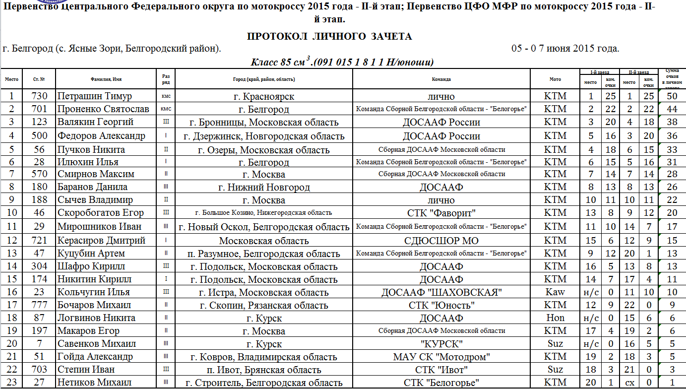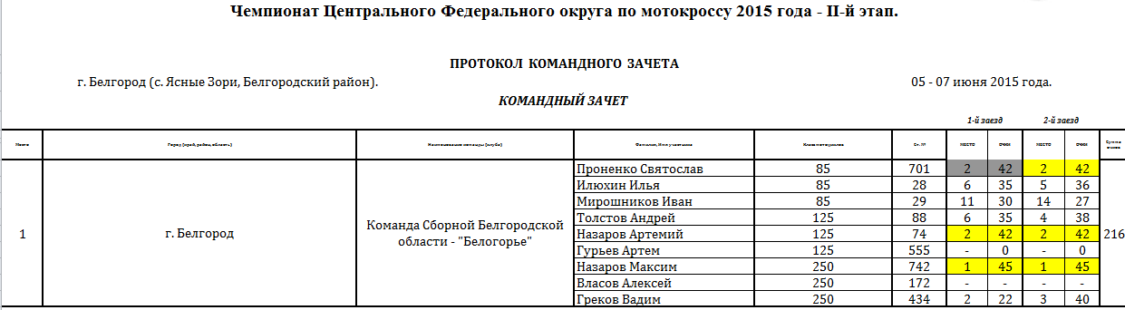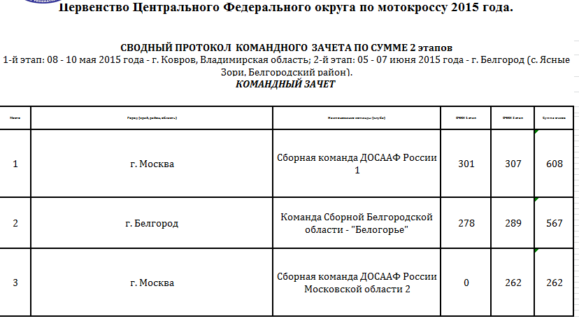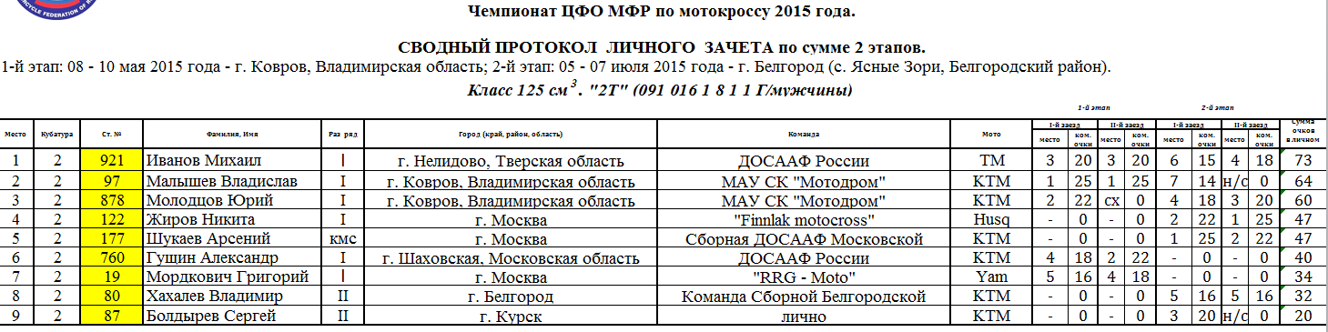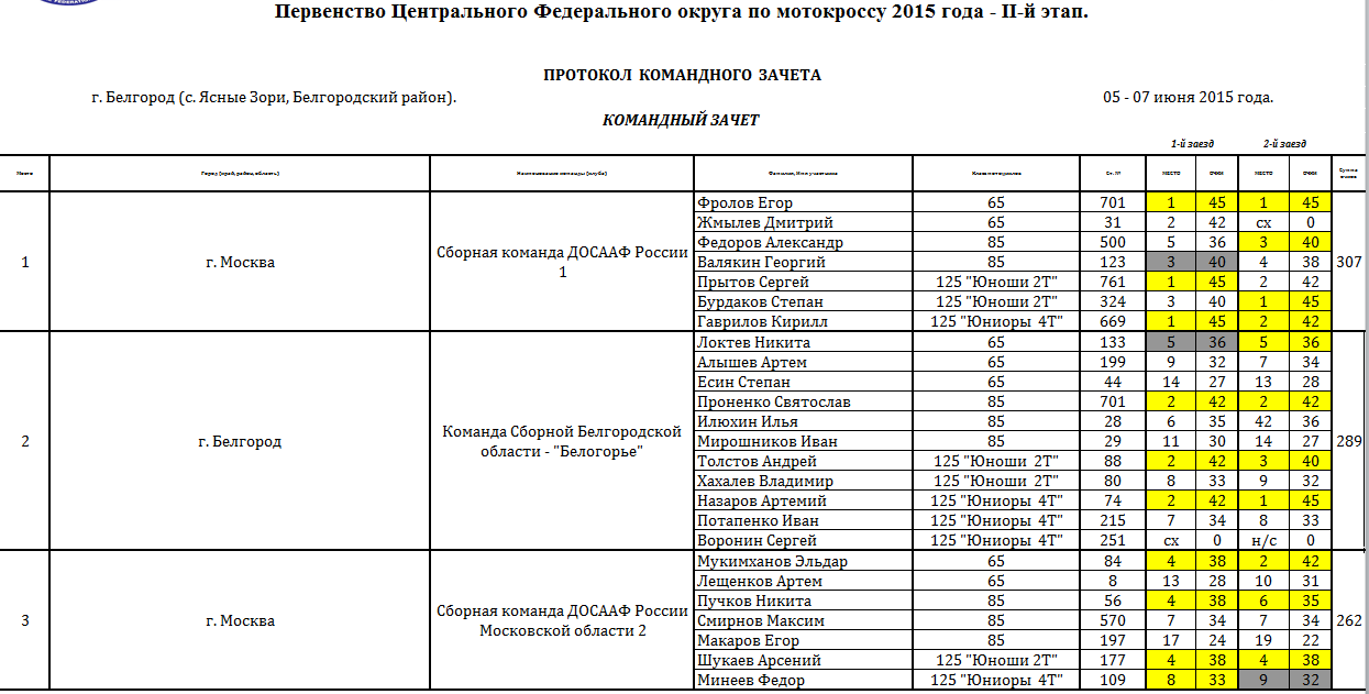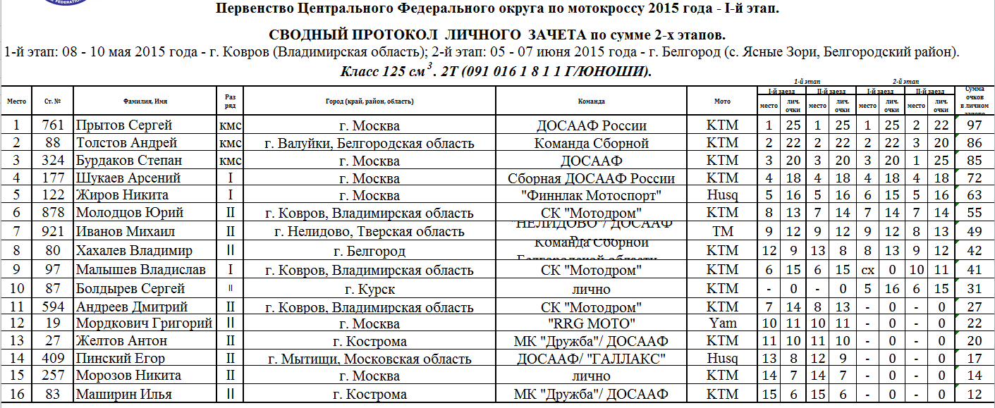 Сводные протоколы по итогам 2-х этапов: