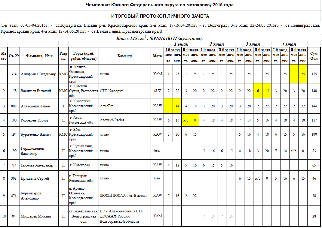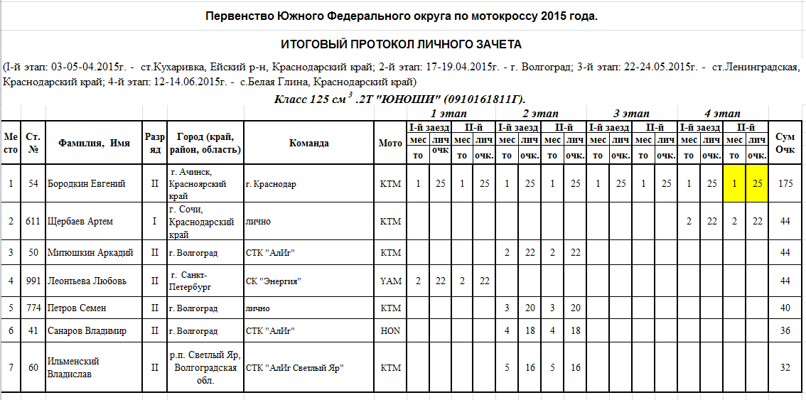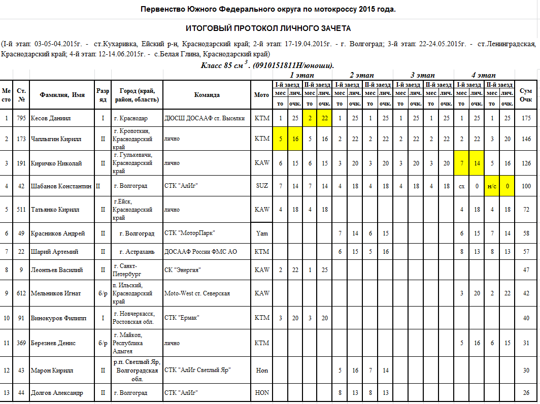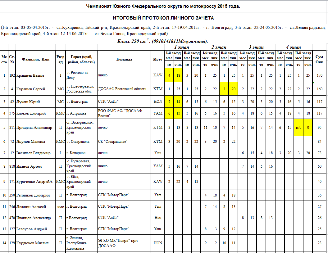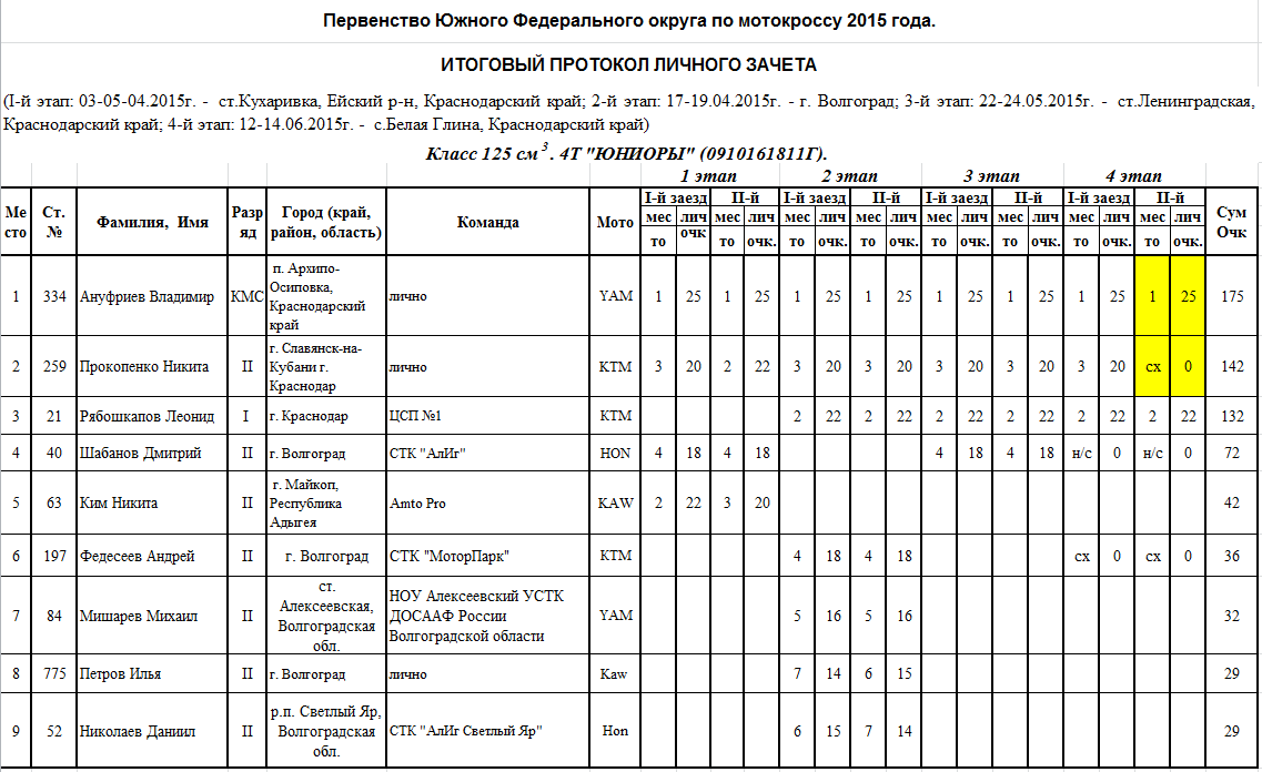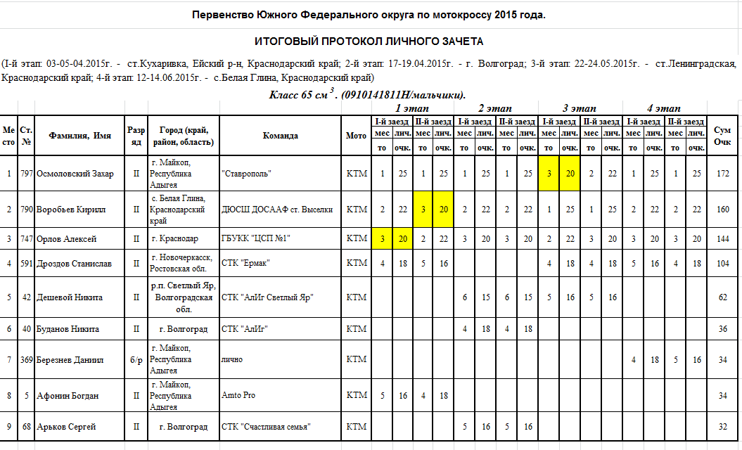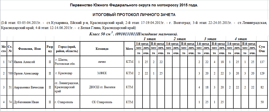 Итоговые протоколы (после 4-х этапов):