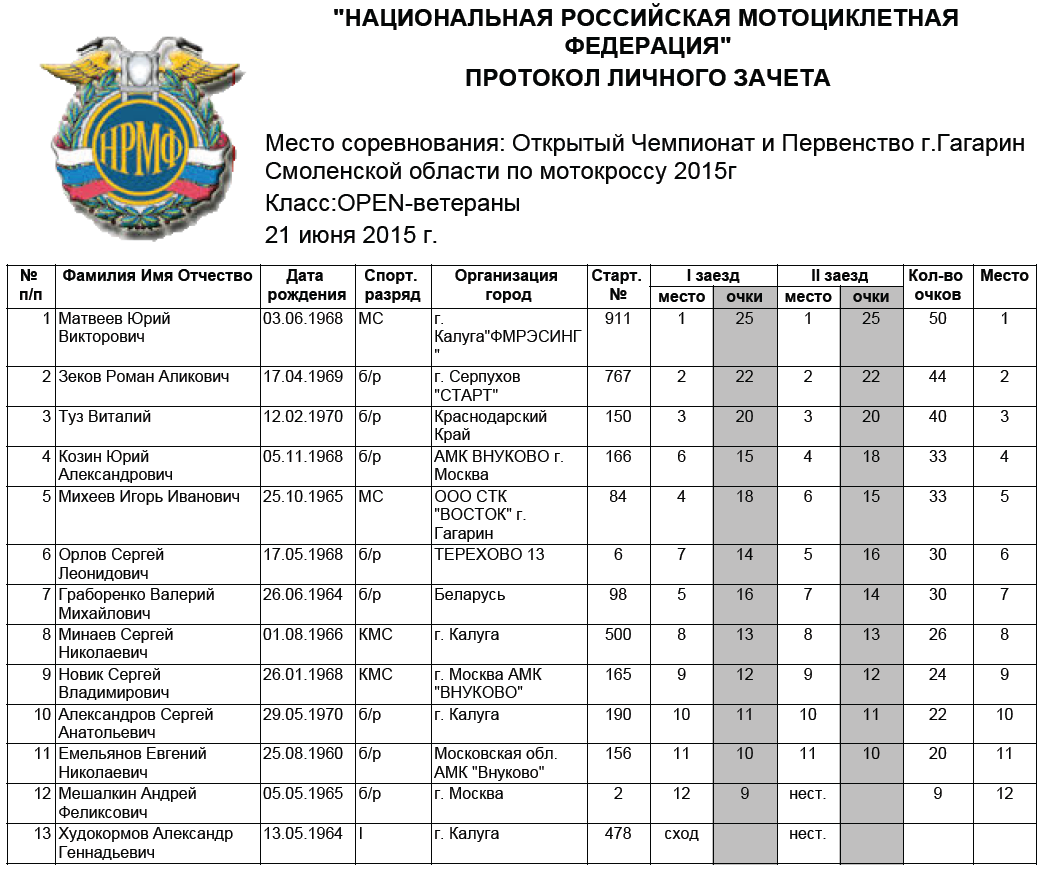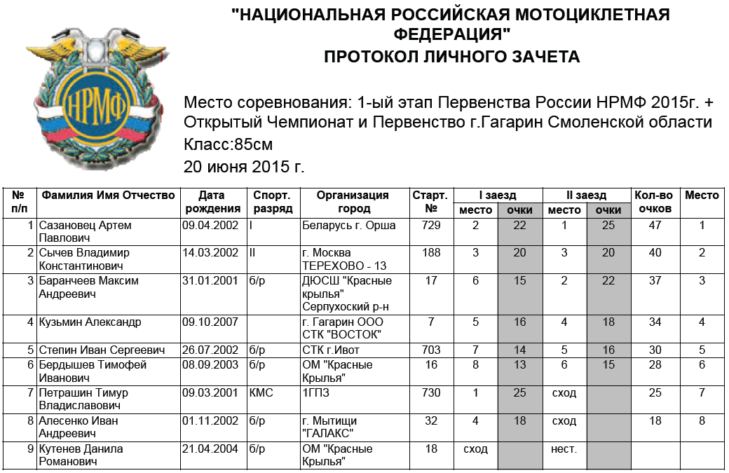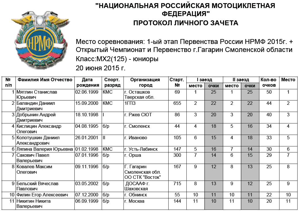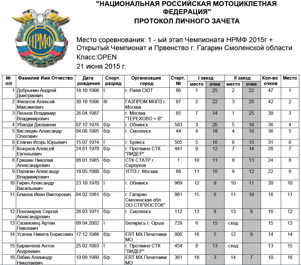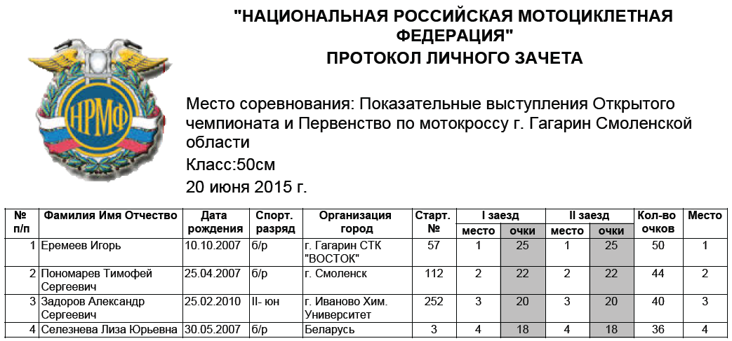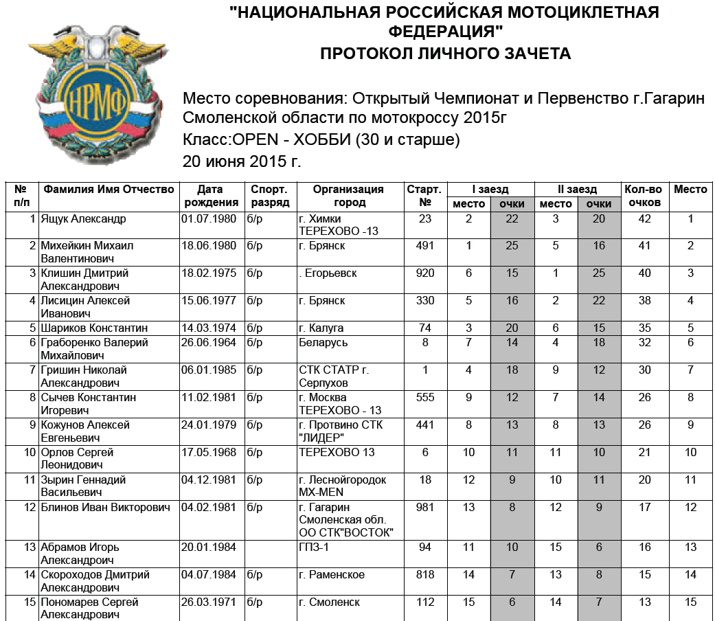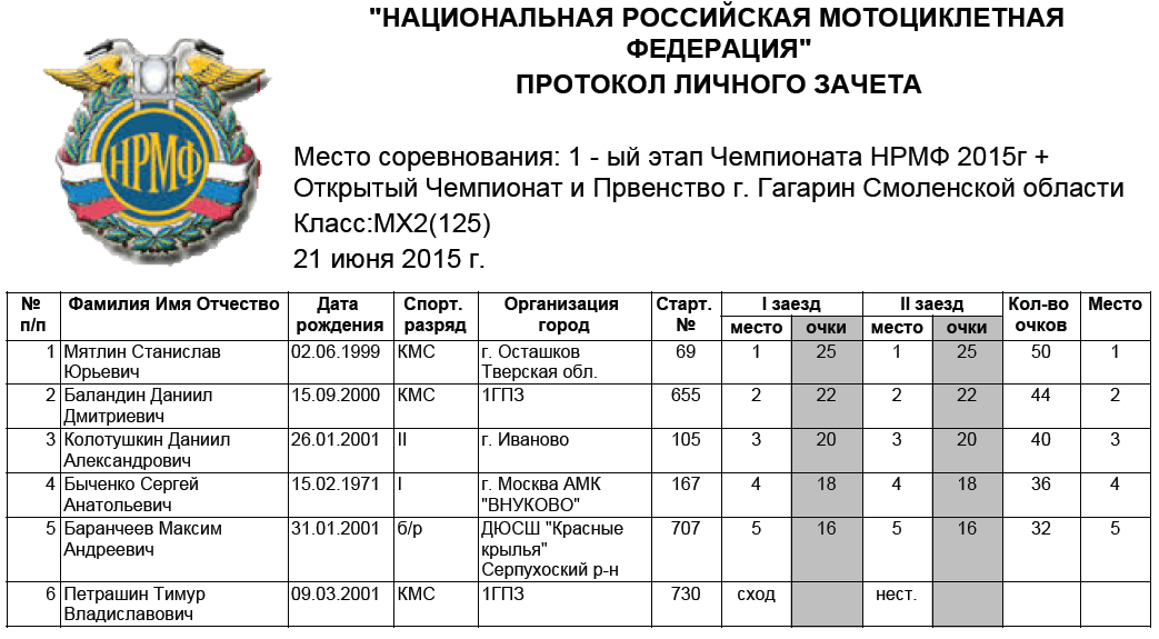 20 и 21 июня на мотоциклетной трассе д.Болычёво Гагаринского района Смоленской области прошел первый этап Чемпионата НРМФ 2015 и Открытый  Чемпионат и Первенство г.Гагарин.