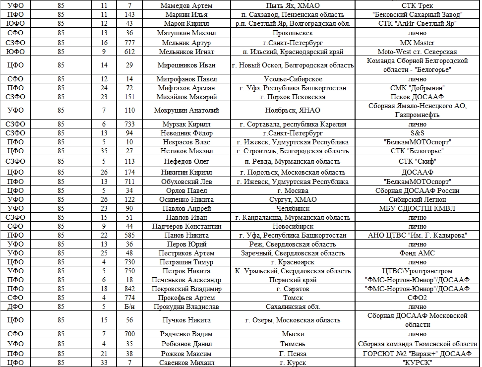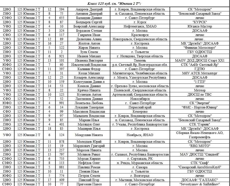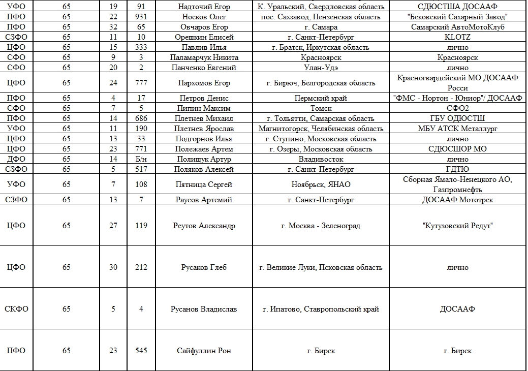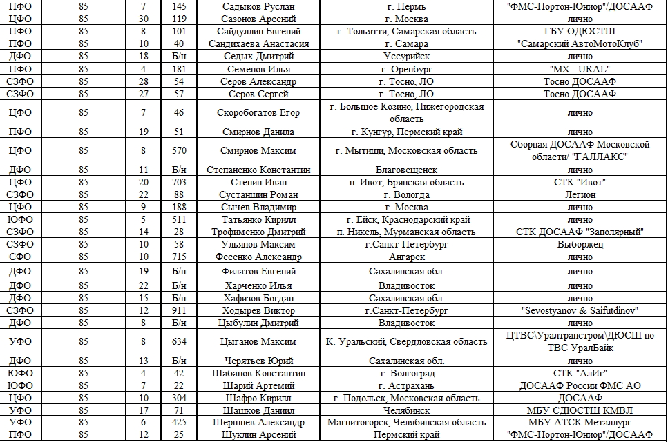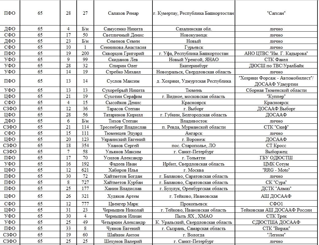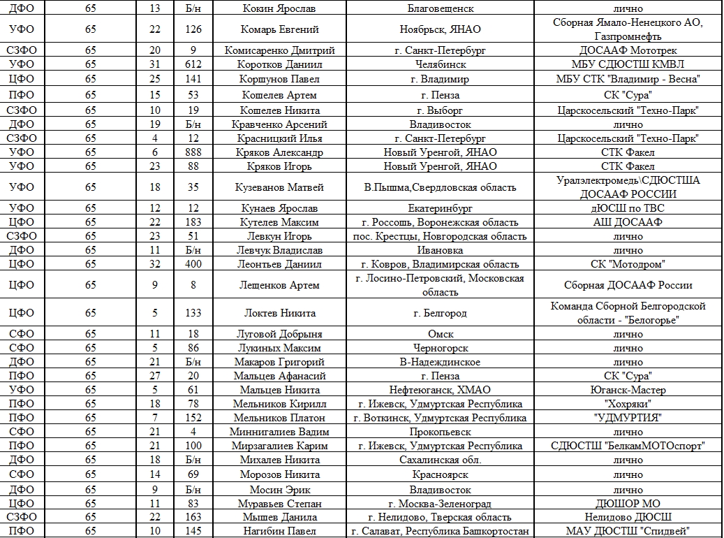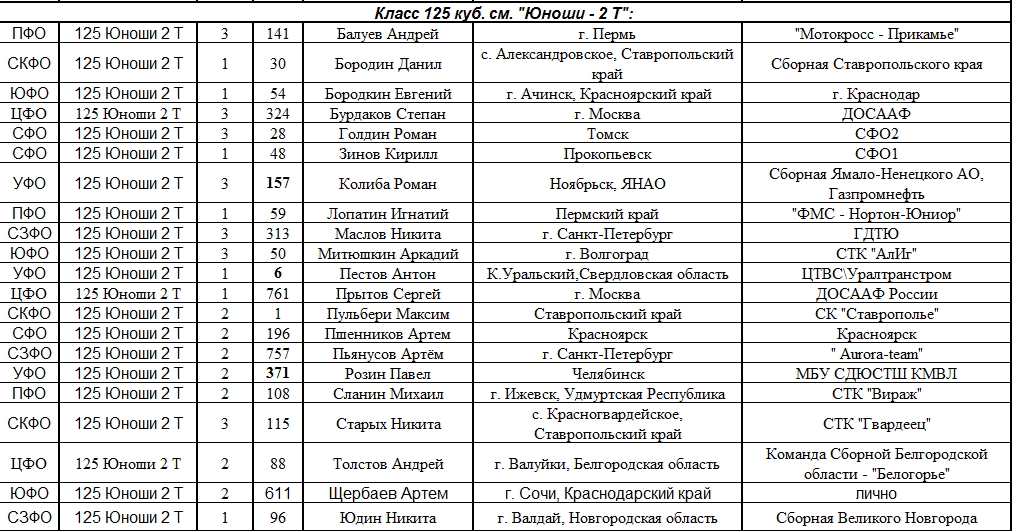 Списки гонщиков допущенных к финалу Первенства России по мотокроссу 2015 19.08.2015 Роман Мишенев (_) Списки допущенных спортсменов участников Финалов Первенства России по мотокроссу 2015, который пройдет с 21по 23 августа в посёлке Сахзавод. Призёры Федеральных округов (без отбора): Участники квалификационного отбора: Комментарии Комментарии к этой статье запрещены.