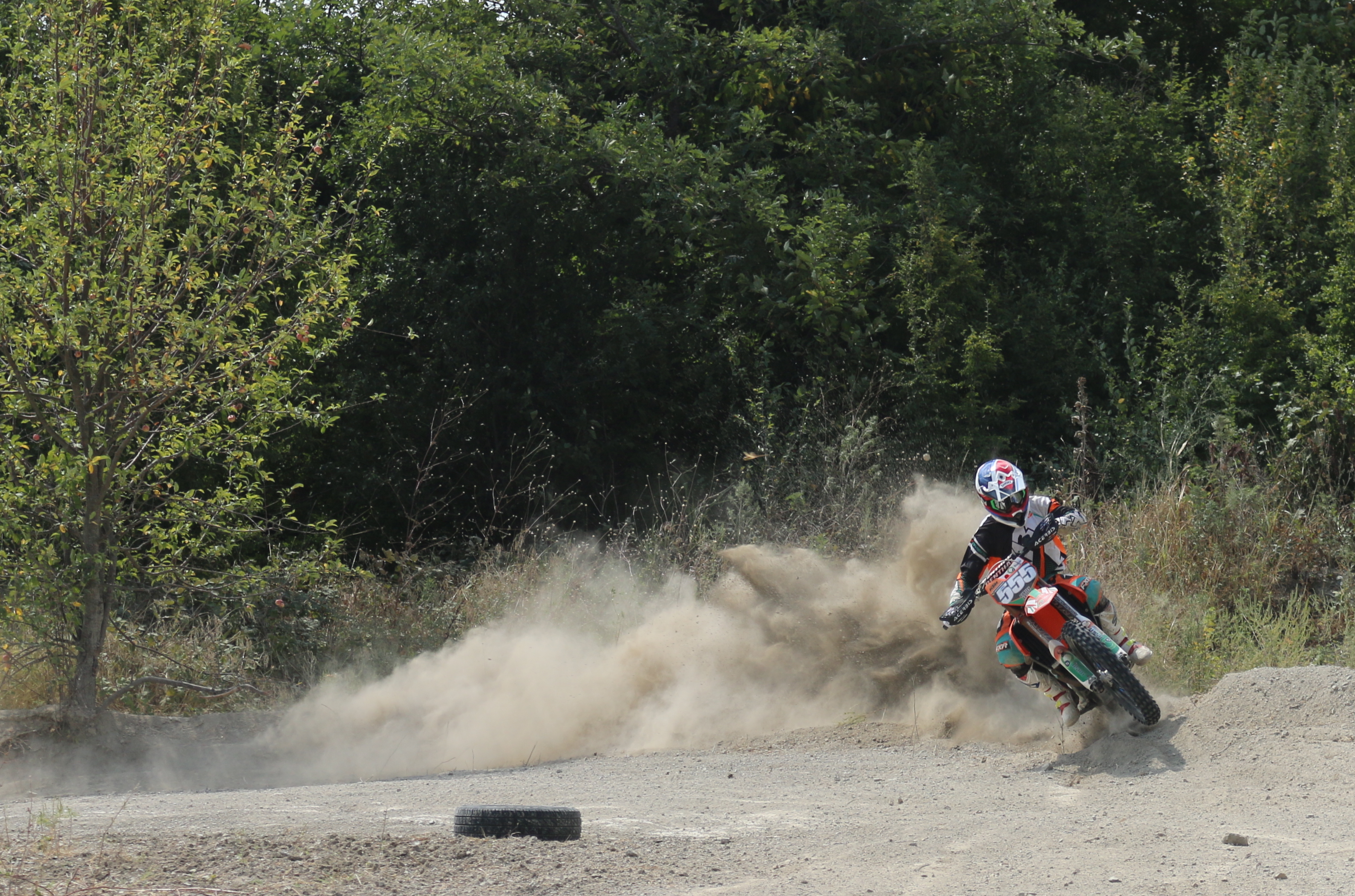 Второй этап прошел на знакомой мне трассе в Орлёнке, и уже на квалификации я показал первое время. К заездам трасса стала бетонная и выметанная, в самом заезде она была очень скользкая и раскатанная в одну дорогу. На первом кругу со старта был 3-им, через пару участков был уже второй. Потом ехал тыкался и много раз сталкивался, пытаясь обогнать соперника. Когда я снова постарался обогнать соперника, он поехал полностью мне на перерез и мы столкнулись, из-за скользкой трассы, не удержался и упал. После падения поехал 5-ым. Пока догонял впереди идущих гонщиков, кто-то сильно упал на прыжке, впереди идущие гонщики прыгнули под желтый флаг, отыграв сразу несколько секунд. Удалось обогнать только одного гонщика, приехал 4-ым. Во втором заезде стартовал 2-ым, уже через 2 круга смог обогнать соперника и ехал первым, отрываясь с каждым кругом. Но в одном из поворотов наехал на камень, не удержался и упал. После чего, поехал 3-им, через 3 круга уже был 2-ым и продолжал догонять первого, с отрывом в 18-20 секунд. За оставшееся время заезда удалось сократить до 3-ех секунд, но времени на то, чтобы обогнать не хватило, приехал 2-ым.