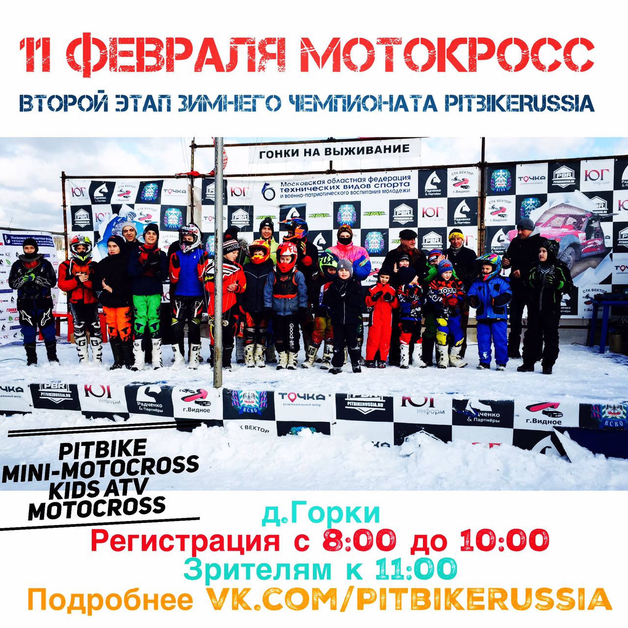 11 ФЕВРАЛЯ 2017. Пройдёт Второй зимний этап чемпионата PitbikeRussia 2017. Состоять он будет из 3 этапов.