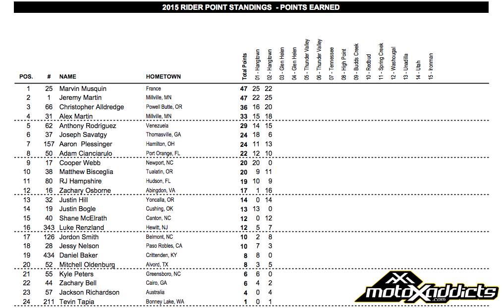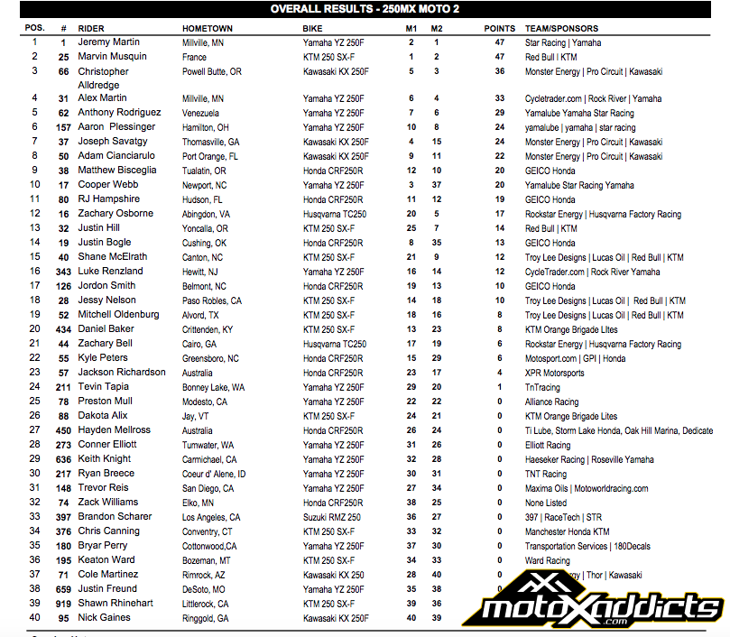 Джереми Мартин победитель первого этапа в Хэнгтаун 17.05.2015 Роман Мишенев (_) Результаты первого этапа АМА Мотокросс 2015 в классе 250МХ. Победителем первого этапа в классе 250MX стал Джереми Мартин. С равным счетом на втором месте француз Марвин Маскуин, третье место у Кристофера Оллдреджа. Результаты Hangtown National - класс 250МХ:: Общий зачет:: Комментарии Комментарии к этой статье запрещены.