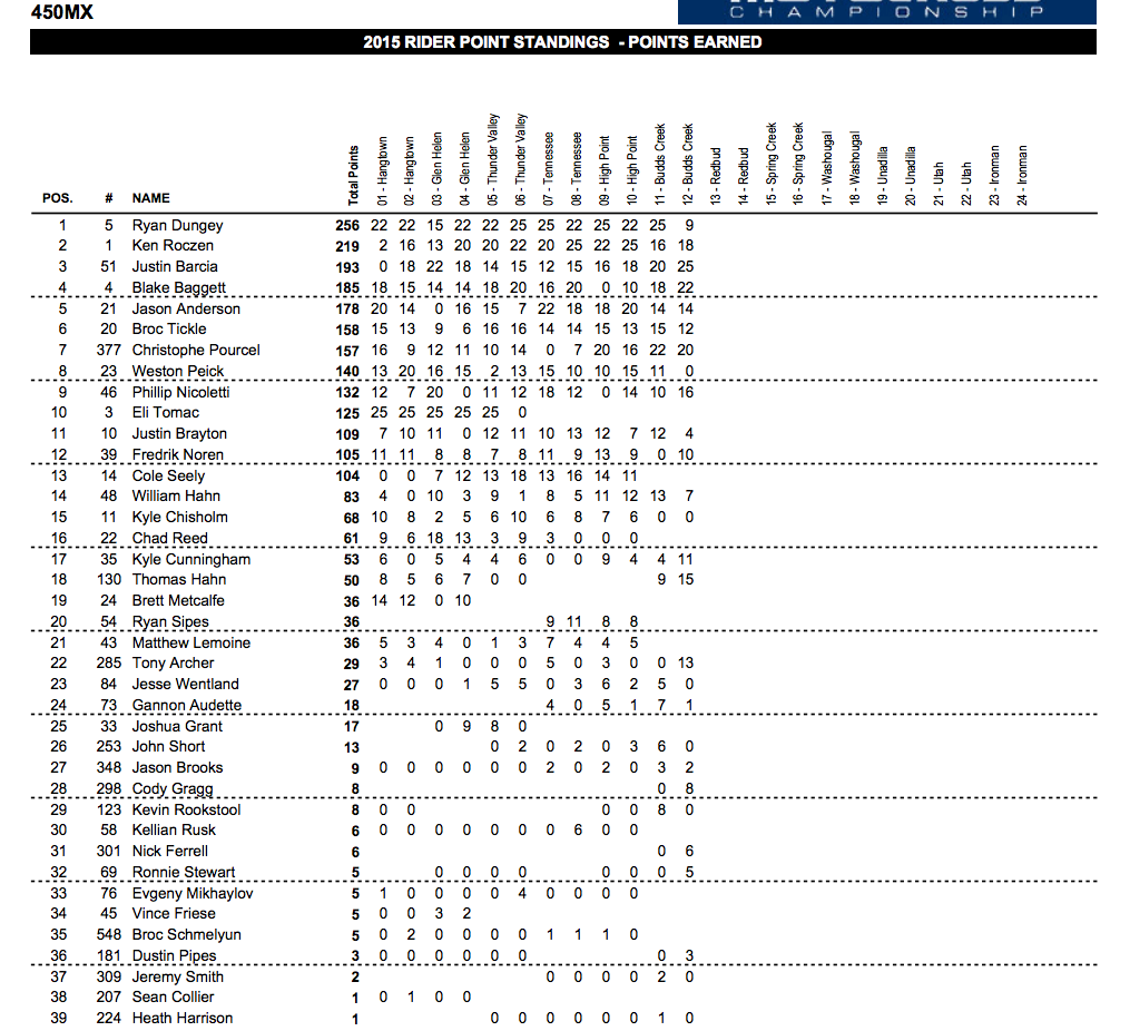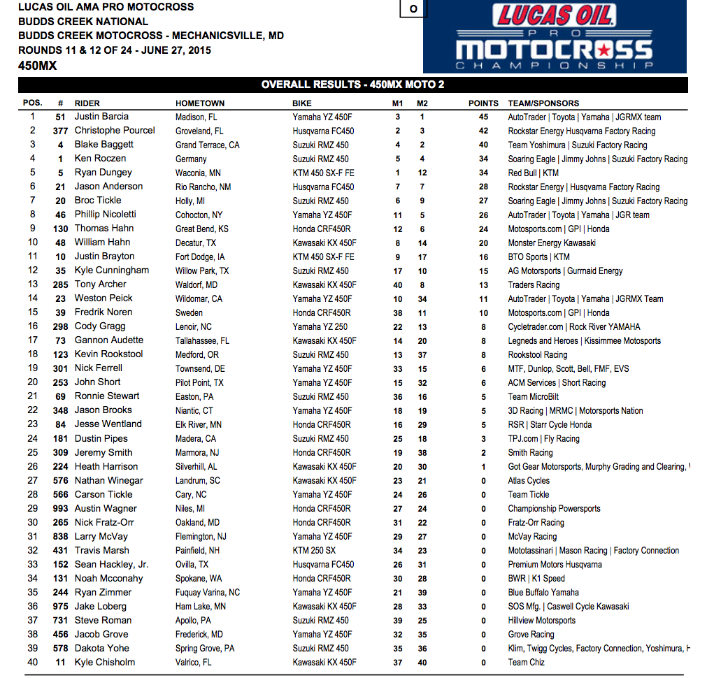 Итоги шестого этапа в Баддс Крик в классе 450МХ.