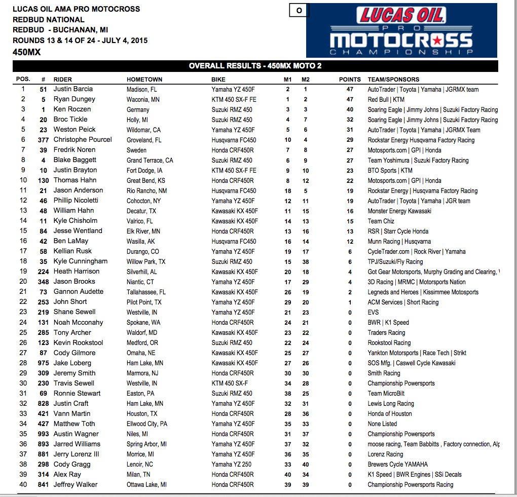 Итоги седьмого этапа АМА Мотокросс 2015 в Рэд Бад