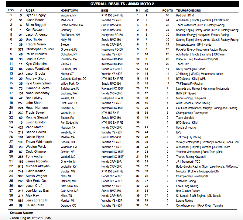В классе 450МХ абсолютным победителем стал Райан Данжи. Вторым стал Джастин Барша, третье место у Блейка Баггетта.