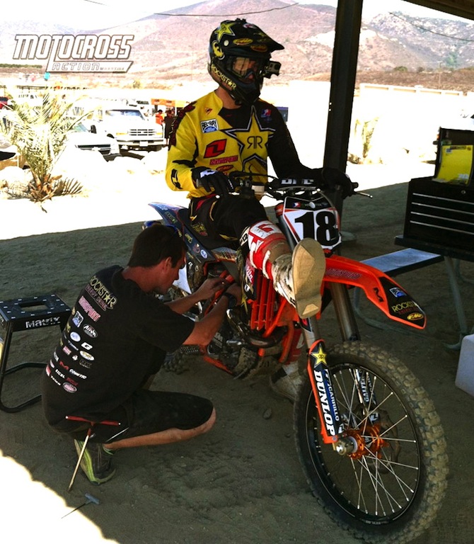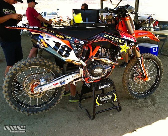 Новость о сотрудничестве команды Rockstar Suzukiс KTM была известна еще на прошлой неделе, но сегодня мы увидели гонщиков команды класса 450сс в Pala Raceway на тестах новых мотоциклов КТМ, в то время как гонщики класса 250сс, по-прежнему на едут RM-Z250s.