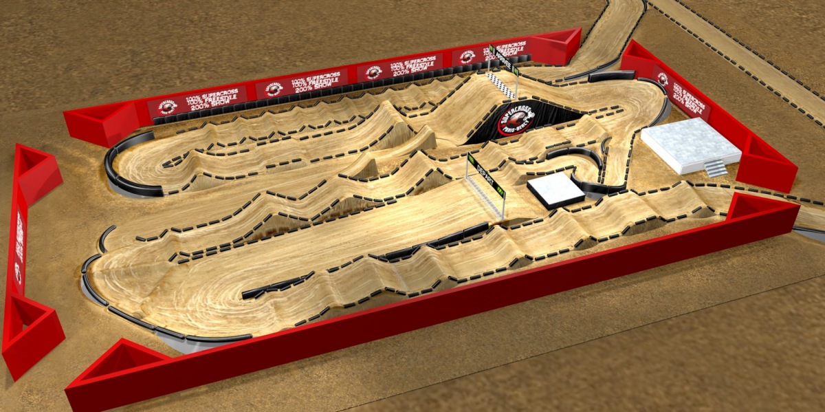 В этом году на треке присутствует Джокер Лайн (ответвление на треке из песка - на фото внизу), через которое гонщики должны проехать один раз за всю гонку, чтобы их результат на финише был засчитан. Сделан по аналогии, что мы все видели на гонке Monster Energy Cup в Лас-Вегасе.
