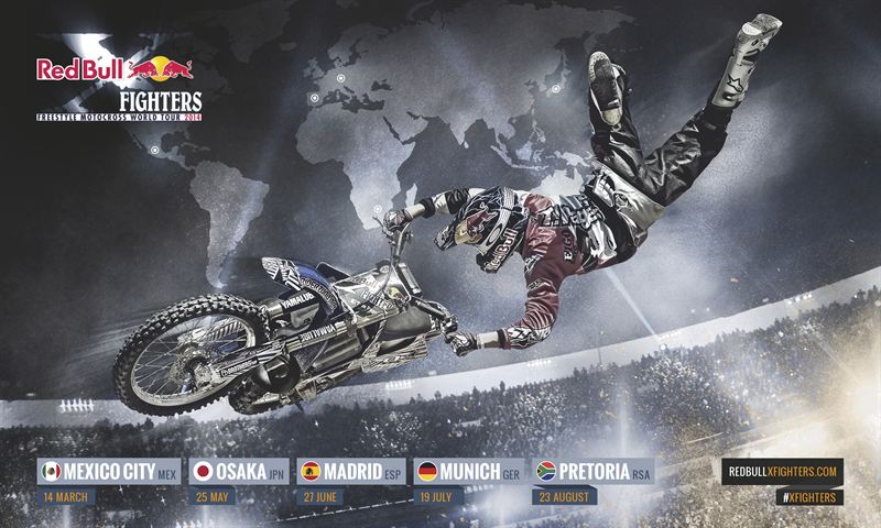 14-й сезон Red Bull X -Fighters World Tour в 2014 году начнется с тура в Мехико (14 марта) и прежде чем вернуться в Европу, сделает остановку в стране восходящего солнца в Осака, Япония (25 мая), далее посетит знаменитую Лас-Вентас арену в Мадриде (27 июня). Позже FMX-райдеры «вторгнутся» в Мюнхен, Германия (19 июля), а кульминацией серии впервые в истории станет тур на арене в Претории, Южная Африка (23 августа).