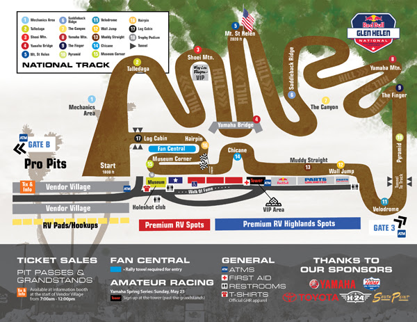 Glen Helen Raceway на холмах Devore севернее Сан-Бернардино - является одной из лучших трасс мира. Гоночный центр размещен на 256 акрах земли. На сегодняшний день центр имеет пять трасс: 1 - Основной про трек, 2 - Трасса для любителей (не менее техничная и скоростная, но без экстремально крутых спусков и подъемов), 3 - Эндуро трасса (расположена на нескольких холмах, извилистый узкий рельефный трек), 4 - суперкросс, 5 - SxS/Багги стадион.