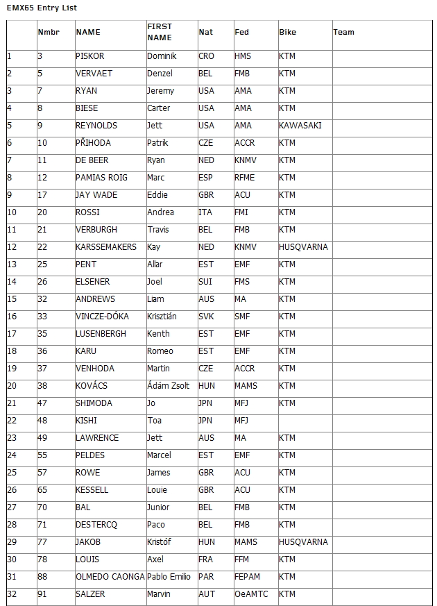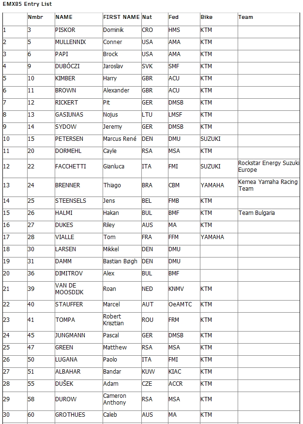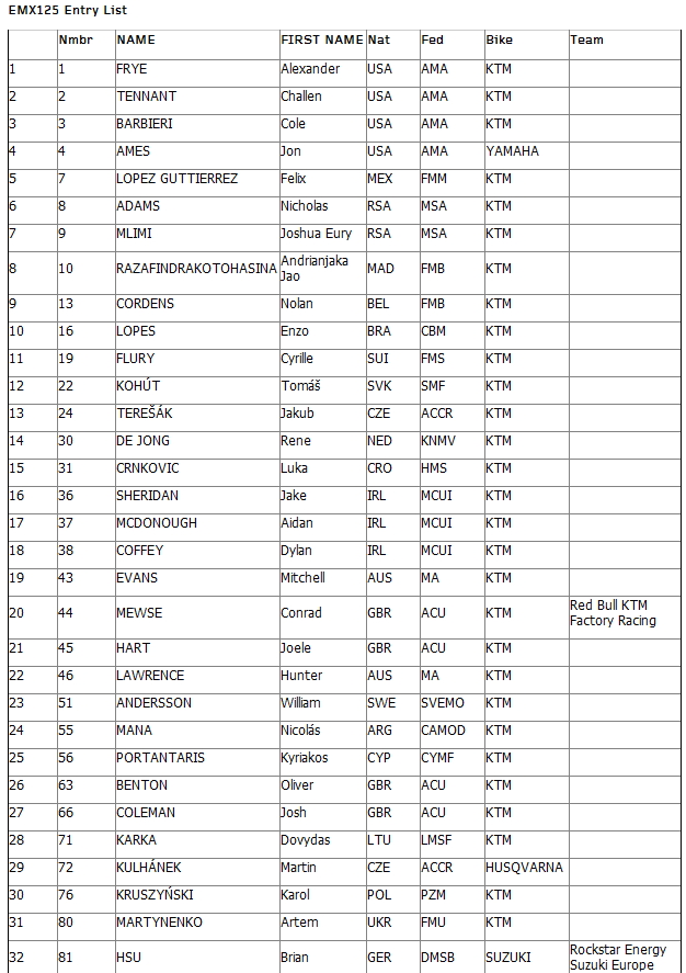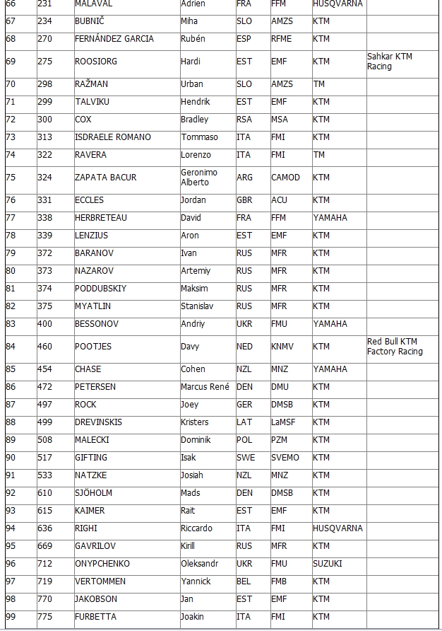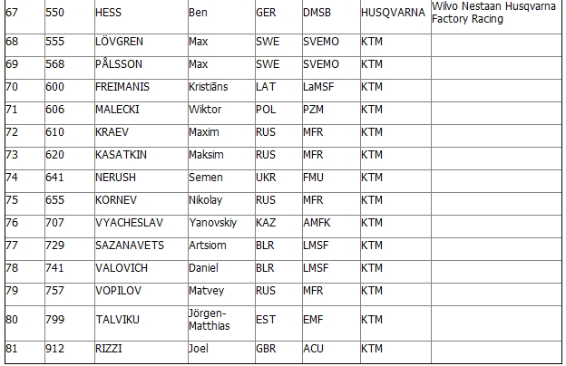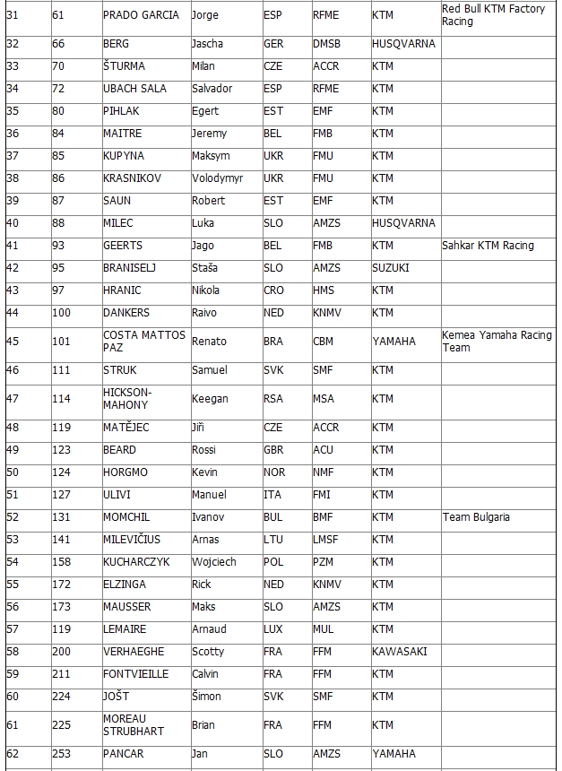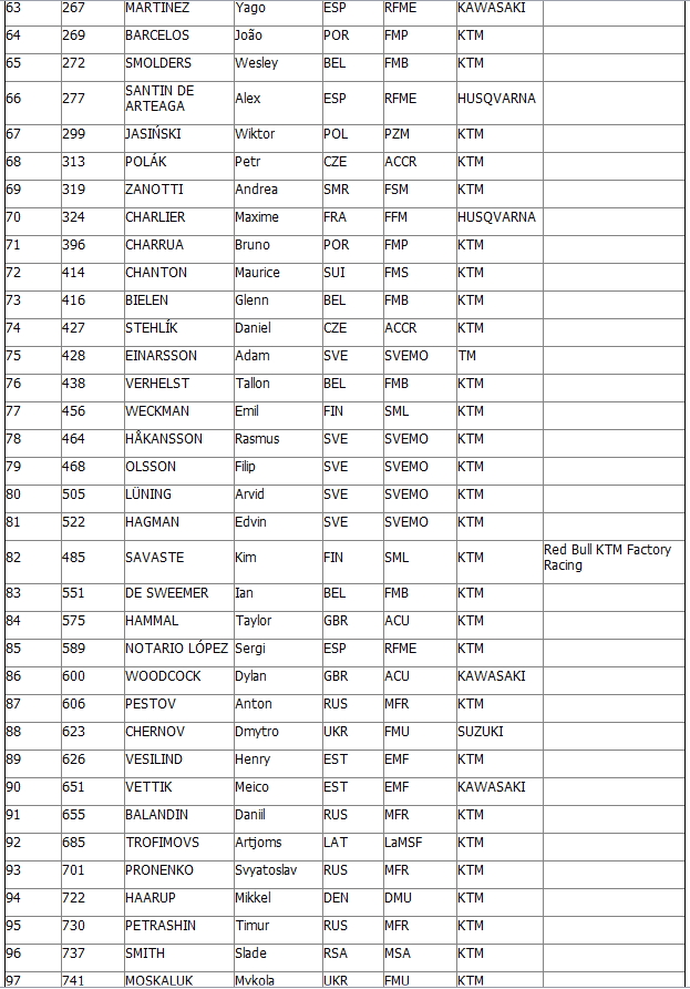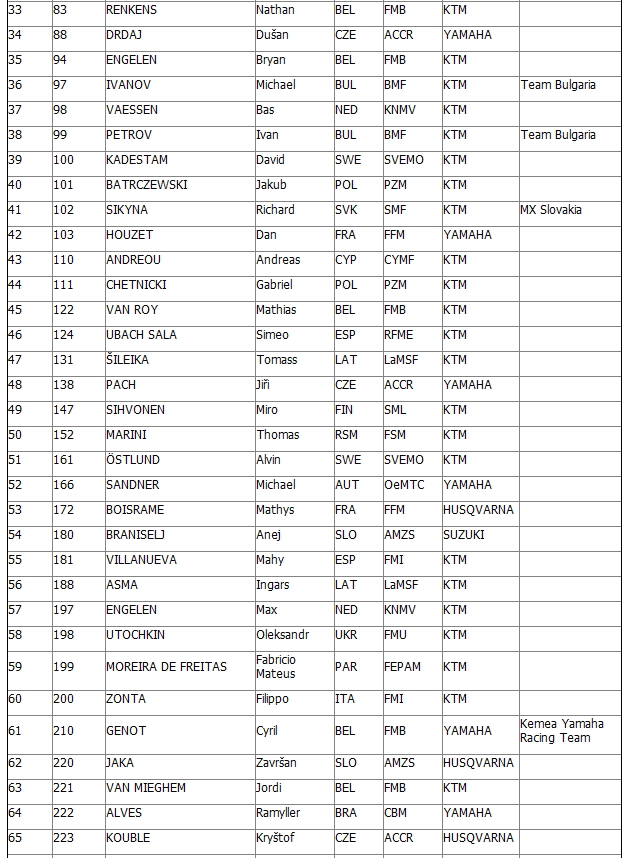 Полныйсписокучастников FIM Junior Motocross World Championship 2014: