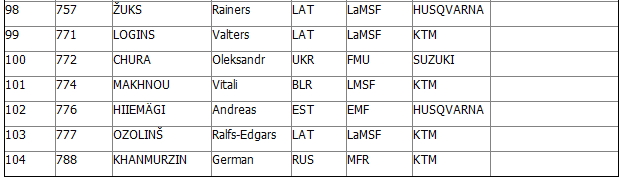 Класс 125сс: Баранов Иван (372), Назаров Артемий (373), Максим Поддубский (374), Мятлин Станислав (375), Гаврилов Кирилл (669).