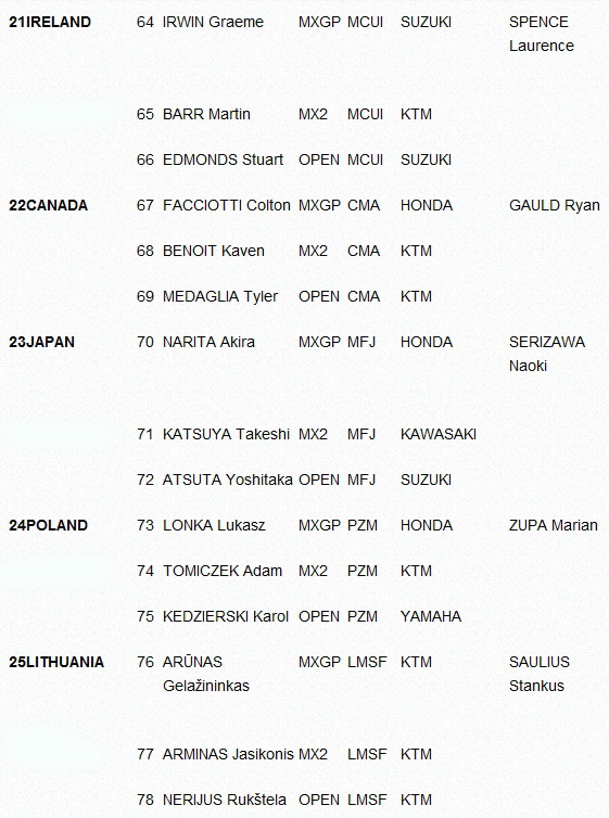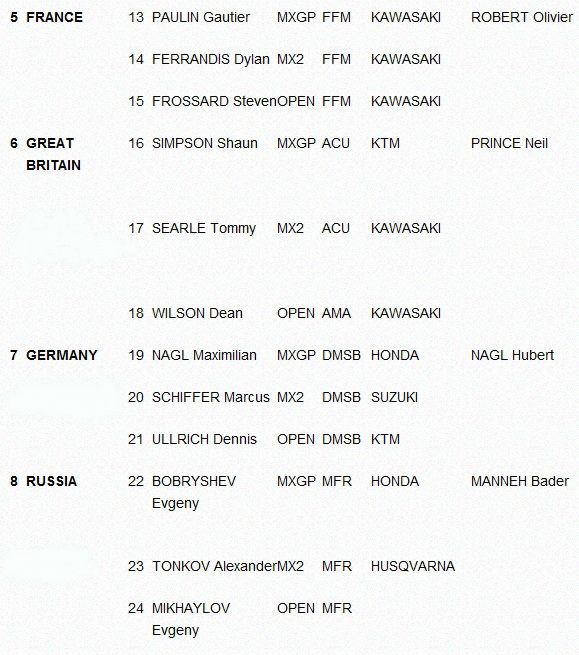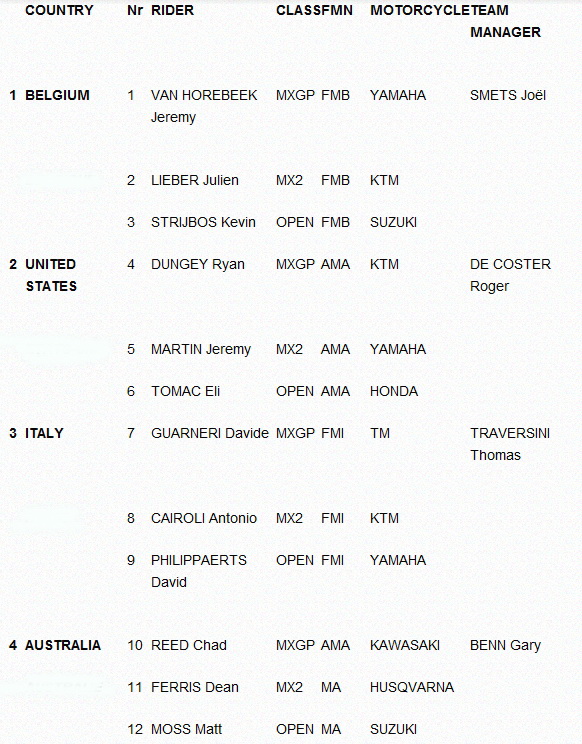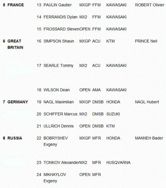 Мотокросс Наций 2014: Полный список команд. 28.08.2014 Роман Мишенев (_) В этом году в командном чемпионате мира в Латвии примут участие 33 национальных сборных... Комментарии Комментарии к этой статье запрещены.