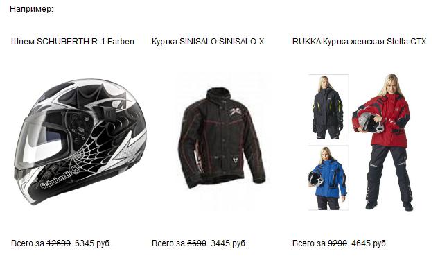 В отделе дисконта салона на Шоссе Энтузиастов действует скидка 50% на все товары мотоэкипировки c 2 по 31 декабря 2014 года.