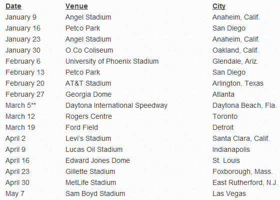 В будущем сезоне 17-ти этапная серия АМА Суперкросс «посетит» два новых трека – это стадион Университета в Финиксе (6 февраля, Глендейл  штат Аризона) и Жиллетт Стэдиум в Фоксборо (штат Массачусетс, 23 апреля).