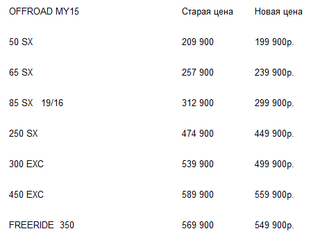 Снижены цены на мотоциклы KTM 06.05.2015 Байк Лэнд Снижены цены на кросс эндуро серии SX и EXC. Акция действует в следующих салонах: Мотосалон Байк Ленд на Можайском ШоссеМотосалон Байк Ленд на Водном стадионеМотосалон Байк Ленд на Щелковском шоссе Комментарии Комментарии к этой статье запрещены.