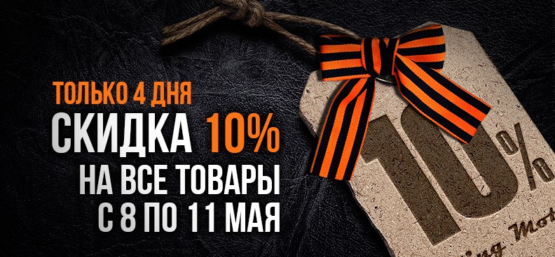 Только четыре дня, в мотосалоне ROLLINGMOTO и Интернет-магазине, действует специальная скидка на всю группу товаров в честь 70-летия Великой Победы.