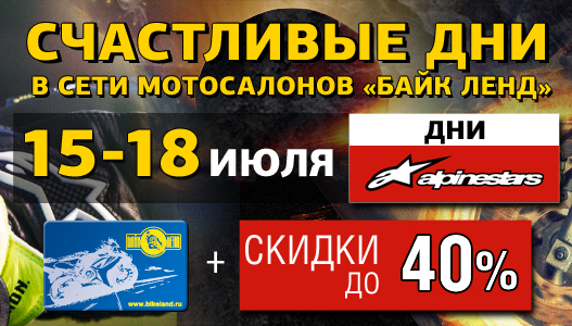 15-18 июля - дни Alpinestars! При покупке мотоэкипировки Alpinestars Вы получите скидку* до 40% и дисконтную карту в подарок!