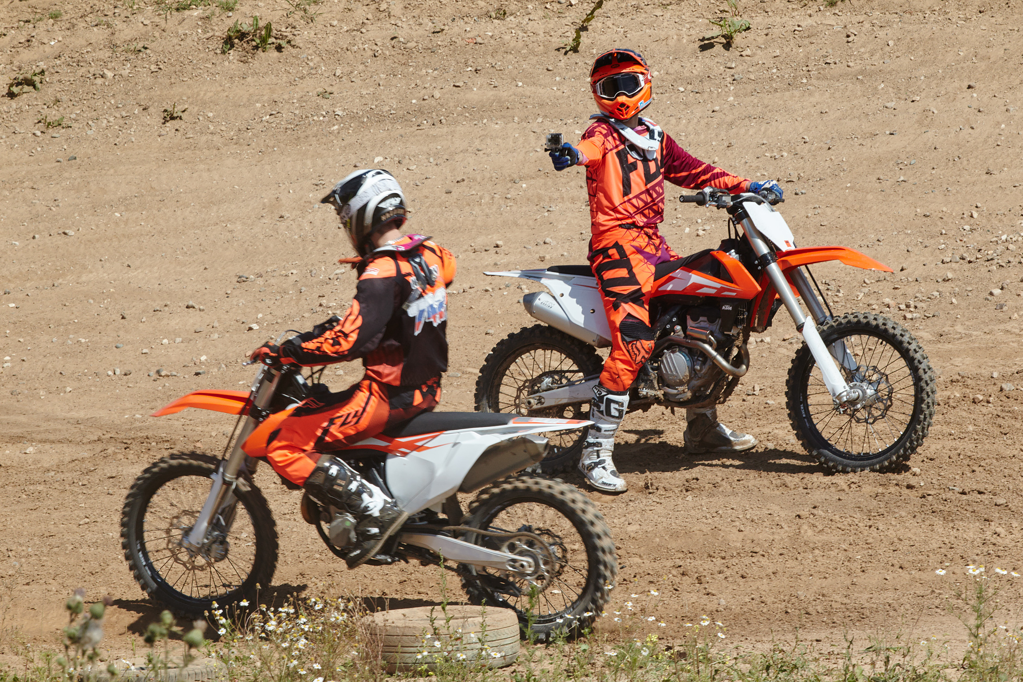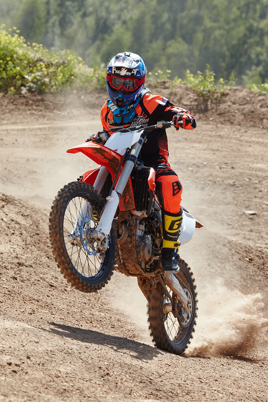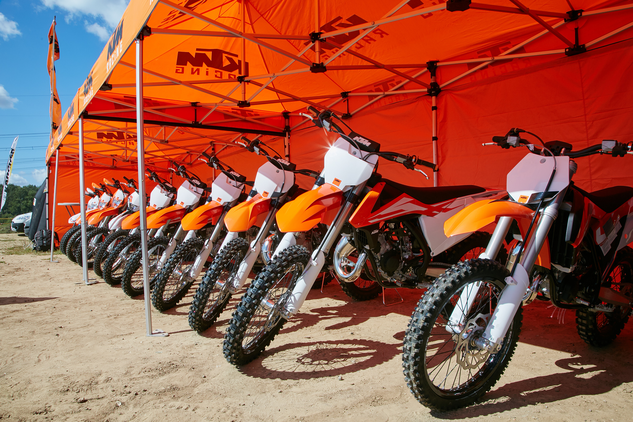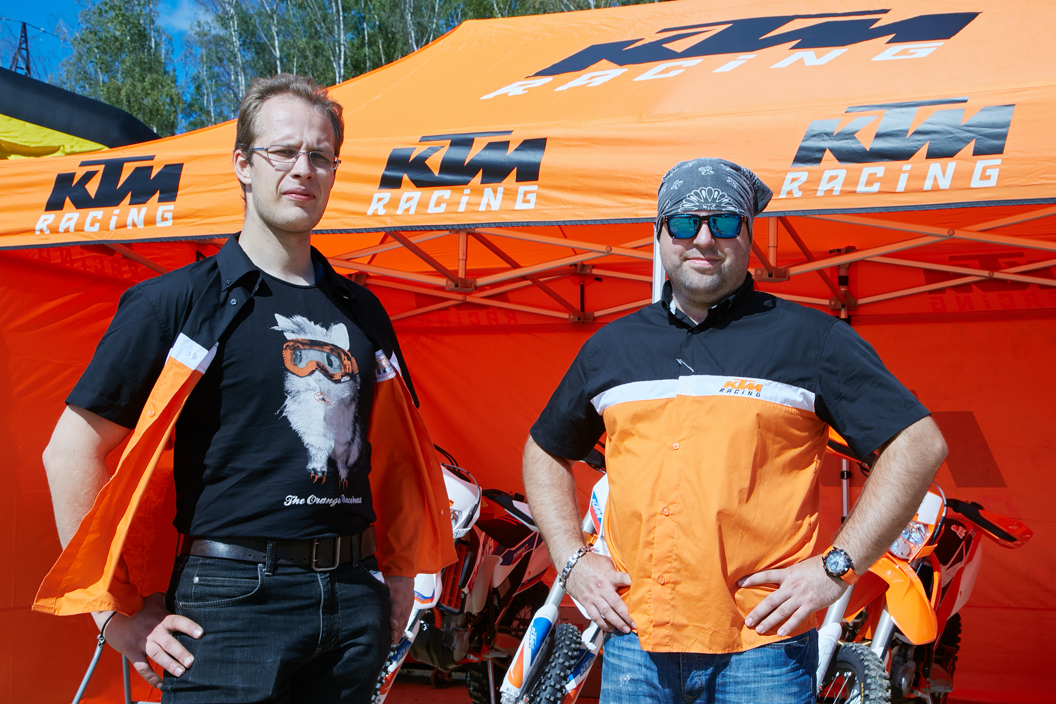 Второй день был полностью отдан самому сладкому: тест-райд всех без исключения моделей семейства прошел в боевых условиях на кроссовой трассе в Бородино. Команда Mtgnoffmag заняла передовые позиции и не глушила моторы ни на миг! Выстрелы двухтактных двигателей калибром 85, 125 и 250 см3 сменялись канонадой четырехтактной артиллерии… Скажу вам, салют вышел на славу! И самое главное - все залпы только в оранжевом цвете!