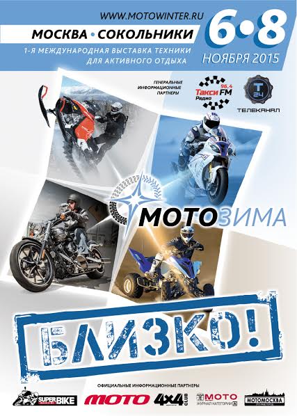 С 6 по 8 ноября 2015 года в КВЦ «Сокольники» пройдет I международная выставка мотоциклов и техники для активного отдыха и профессионального спорта «Мотозима 2015». Главная идея выставки – дать мотоиндустрии новый импульс в преддверии зимнего сезона. Окончание летнего мотосезона может стать началом затишья, в то время как данный выставочный проект подарит любителям активного отдыха и производителям тематической техники настоящую Мотозиму!