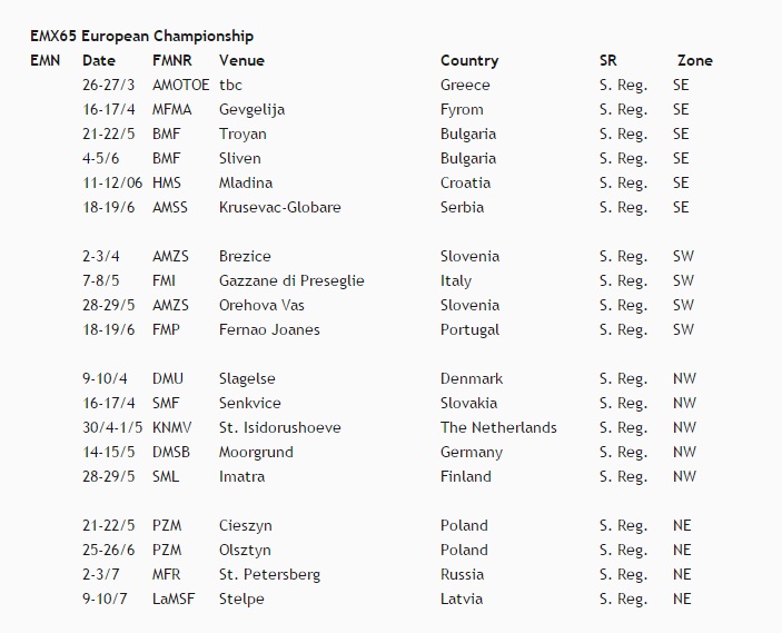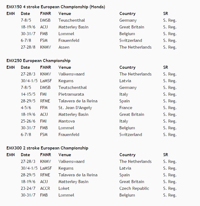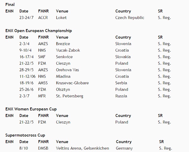 Опубликован календарь  FIM Europe 2016.