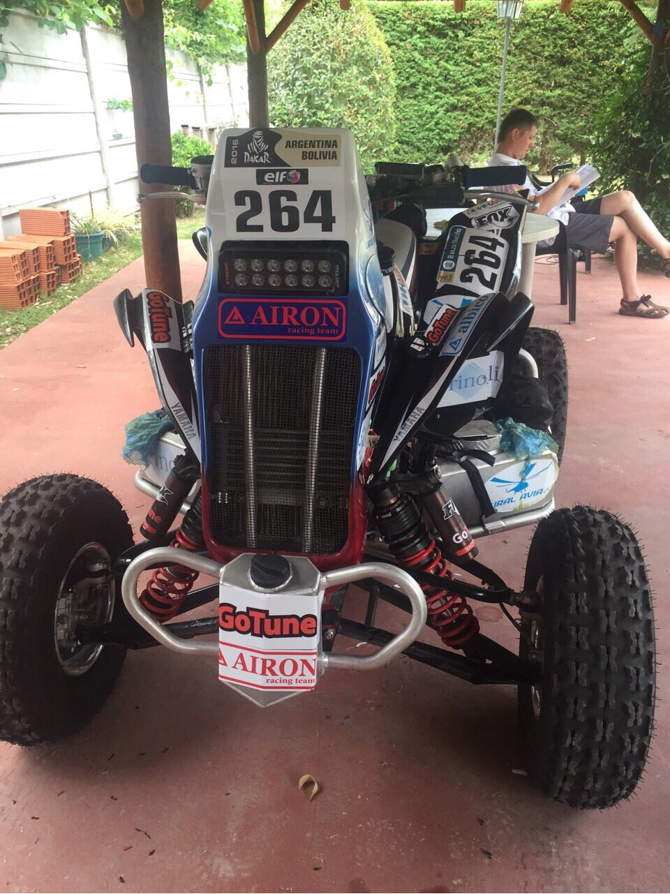 «Сегодня 1 января, прошли все административные проверки, скажу честно, что не обошлось без нареканий. Все-таки первый раз еду сам, не в составе французской команды, и много нужно было подготовить. Единственная проблема – сзади нужен дополнительный бампер на сам маятник, а я сделал дополнительный бампер на заднюю часть квадроцикла. Организаторы разрешили внести изменения на первом бивуаке, чтобы нам сегодня не тратить время. Остальные замечания мы быстро устранили (недостаток гудка, отсутствие зеркала заднего вида).Очень рад был видеть сегодня друзей из России – Свету Амеличкину, Михаила Ласточкина и Дениса Бушковского. Команда G-Energy Владимир Васильев и Константин Жильцов поделились своим оптимизмом, уверенности в себе и в своей технике, команде. Остался доволен своей командой, все заряжены на результат, отлично мотивированы, надеюсь, что так будет и в дальнейшем. Завтра первый день, первый спецучасток короткий – всего 11 км, но важно помнить, что до финиша еще очень далеко. Сломаться и перевернуться можно хоть за 20 м до финиша, и все усилия окажутся напрасными. Важен каждый метр, каждый сантиметр трассы, и расслабляться никак нельзя!»