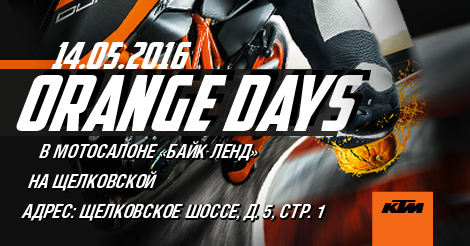 14 мая в г. Москва, в мотосалоне «Байк Ленд» на Щелковском шоссе состоится KTM Orange Day!