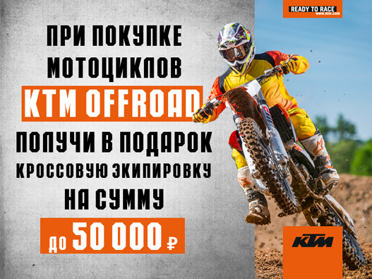 КРОССОВАЯ МОТОЭКИПИРОВКА В ПОДАРОК ПРИ ПОКУПКЕ СПОРТИВНЫХ ВНЕДОРОЖНЫХ KTM!