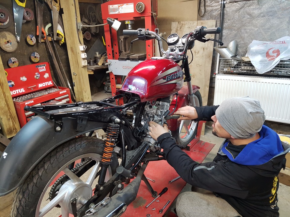 После долгих обсуждений, мы привлекли к реализации проекта, человека со сложным характером, но воистину платиновыми, покрытыми неограненными бриллиантами - руками... Курочить мотоцикл стал сам глава и владелец мастерской RJO - великий и ужасный Максим Кармалицкий, мотогонам известный как MAX 27
